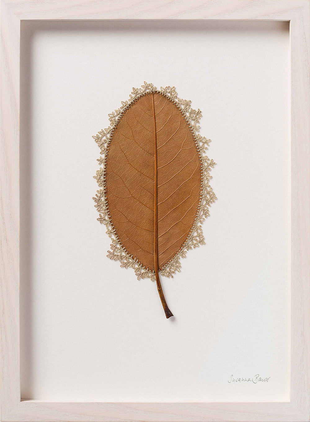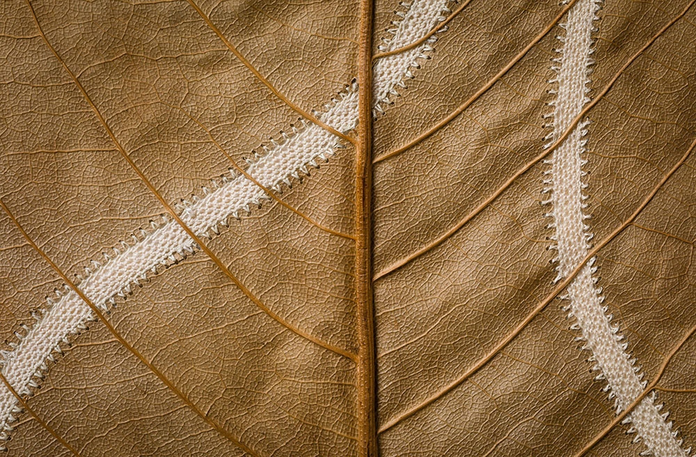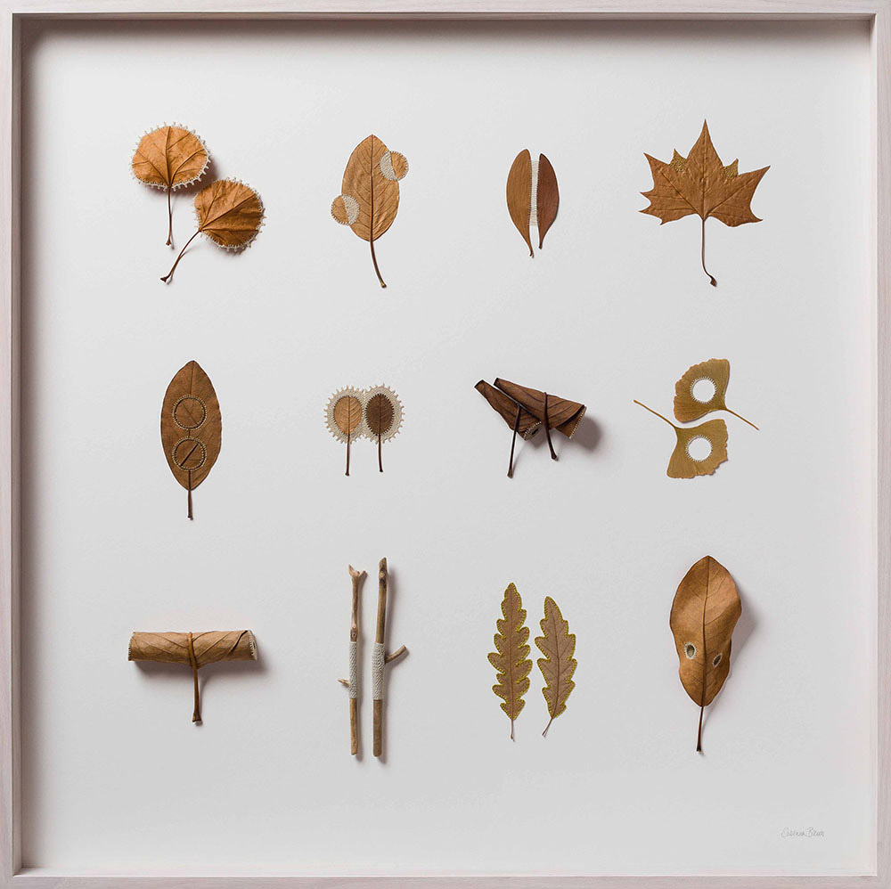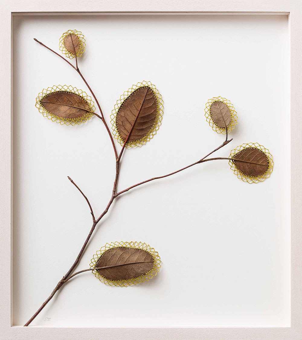 Artist Susanna Bauer adds threaded embellishments to dried leaves, creating miniature sculptures that explore the hidden beauty and connectedness of all things. See more images from “Connections” below or on display at Le Salon Vert gallery in Switzerland until June 10.