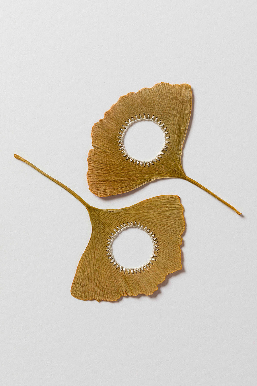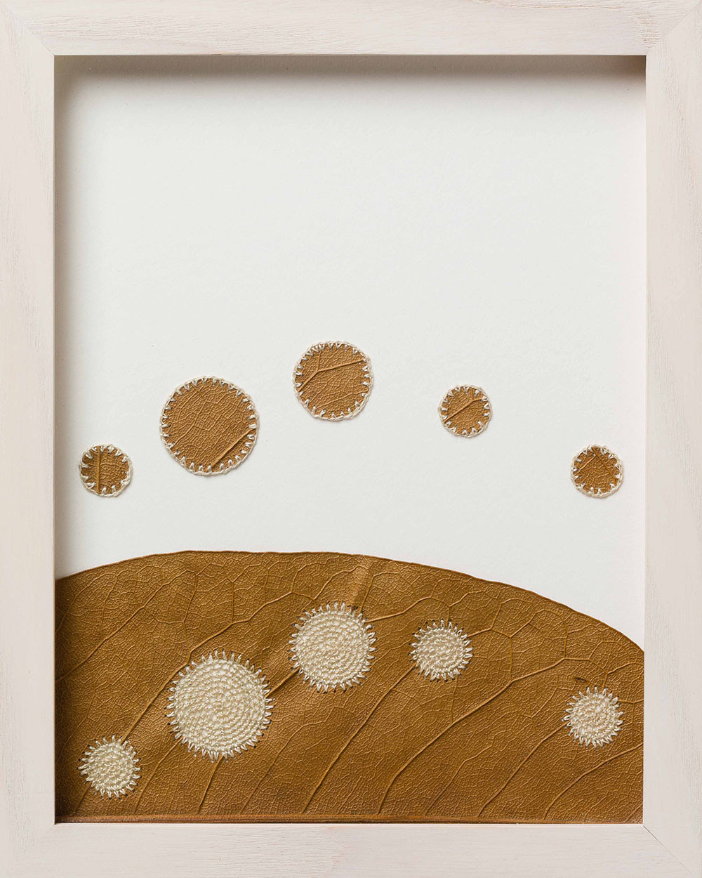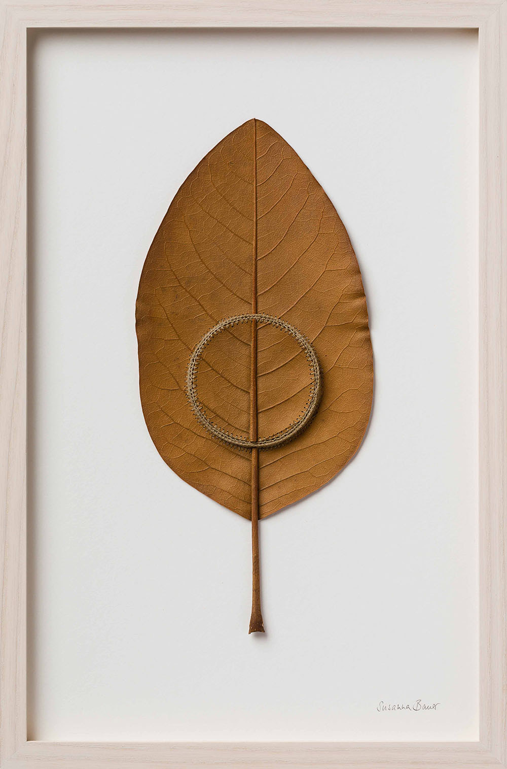 Artist Susanna Bauer adds threaded embellishments to dried leaves, creating miniature sculptures that explore the hidden beauty and connectedness of all things. See more images from “Connections” below or on display at Le Salon Vert gallery in Switzerland until June 10.