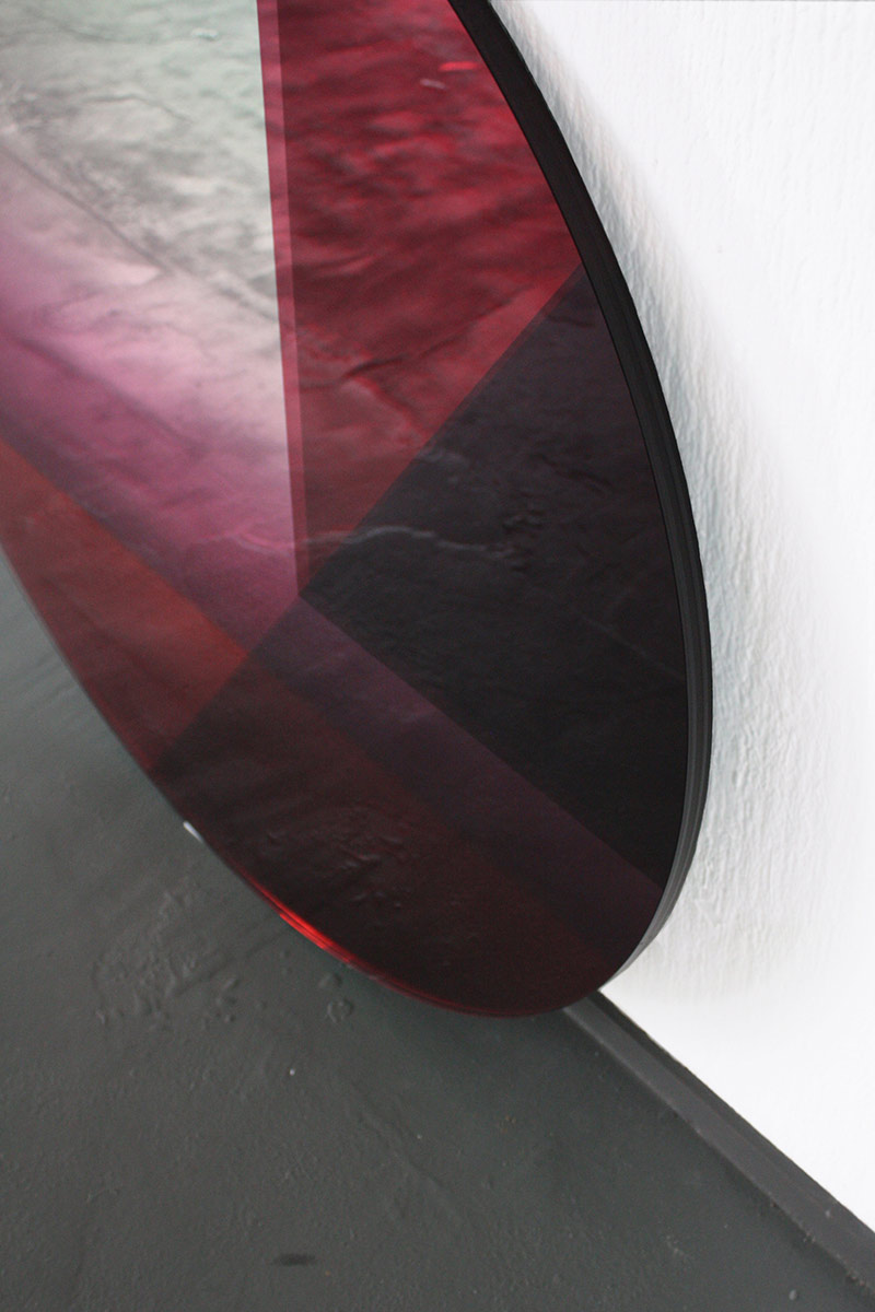 “Seeing Glass Big Round”, a collaboration between Sabine Marcelis and Brit van Nerven. These sculptures were created by sandwiching coloured foils between several layers of glass. More images below.