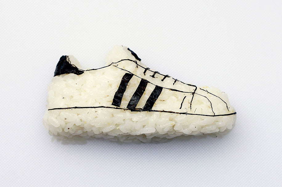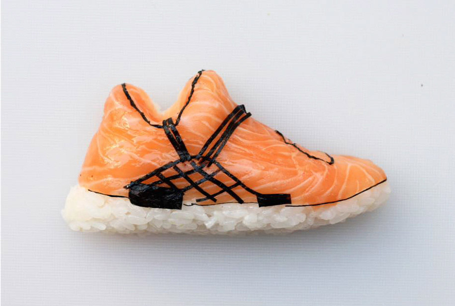 Milan-based chef and artist Yujia Hu makes sushi in the form of miniature athletic footwear. Check out more “shoe-shi” art below!