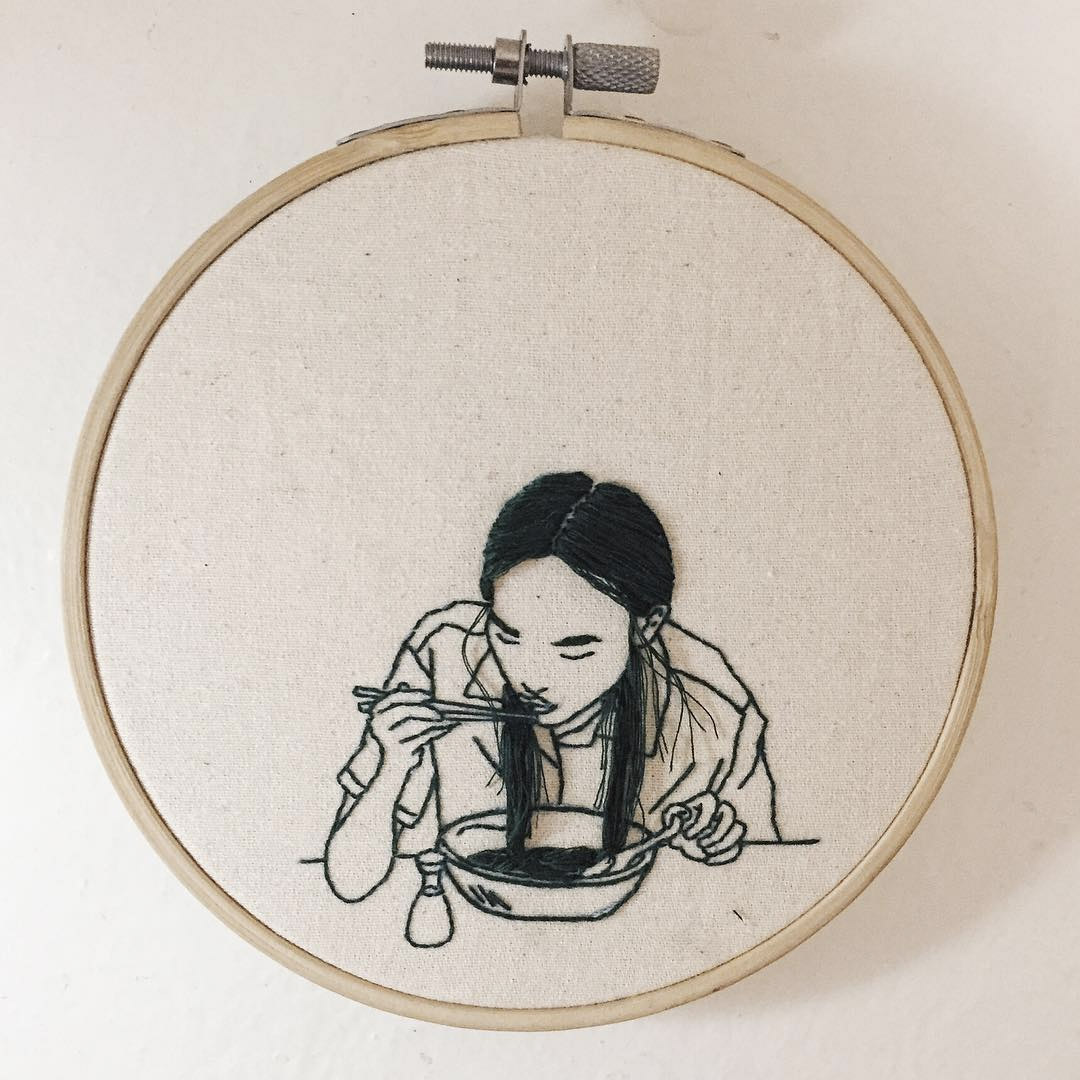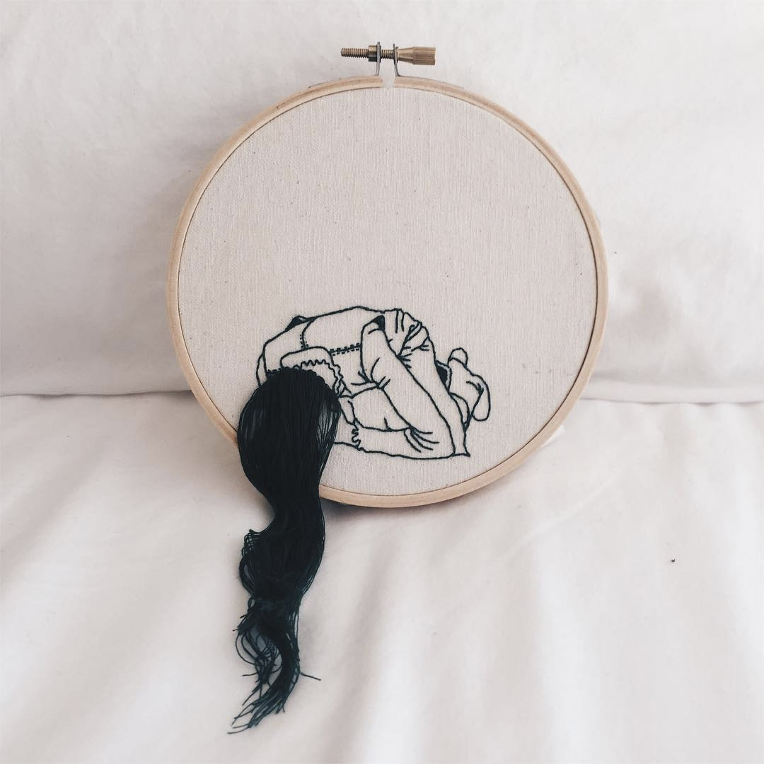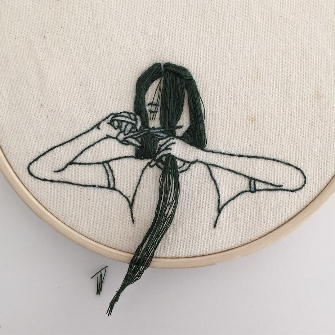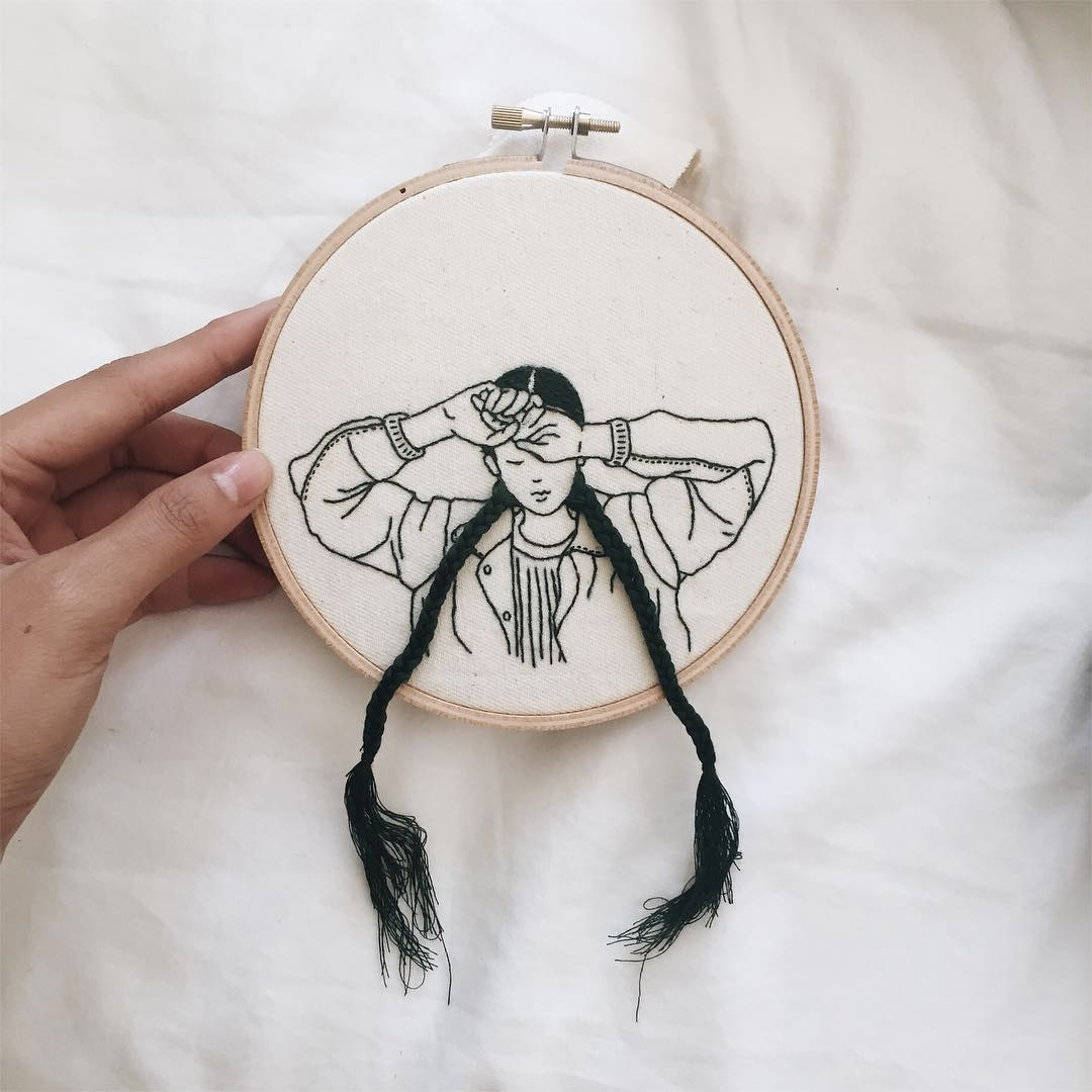 Love these embroidered portraits of women’s hair flowing out of frame by Los Angeles-based artist and model Sheena Liam. Started as something to pass the time between photoshoots and shows, Liam has begun to document her projects on a dedicated Instagram account (@times.new.romance). Check out more three-dimensional “hoop art” below!