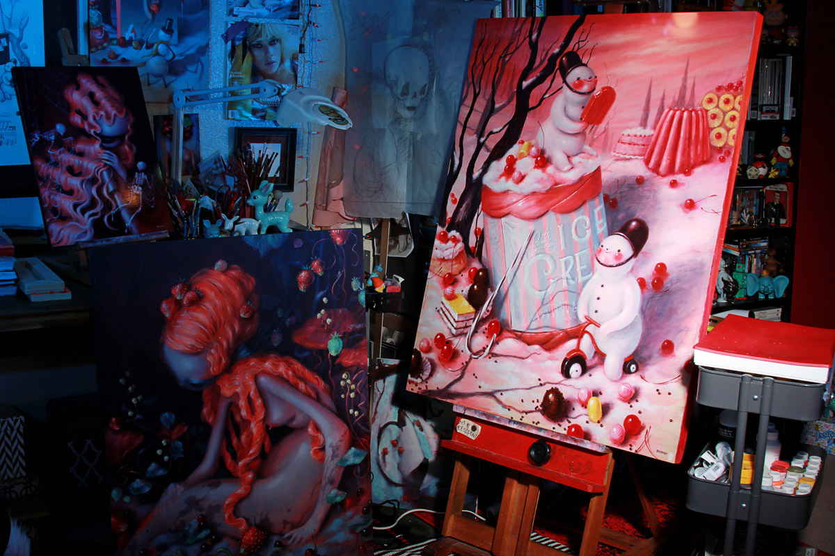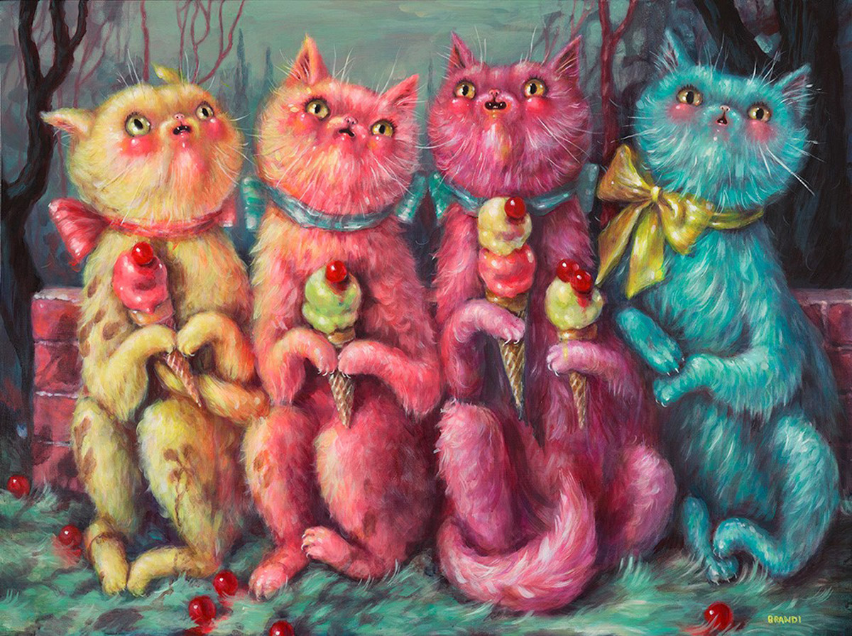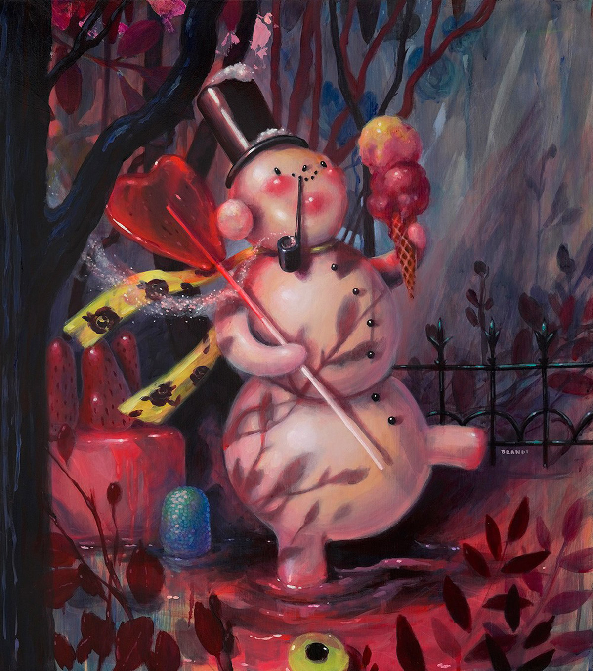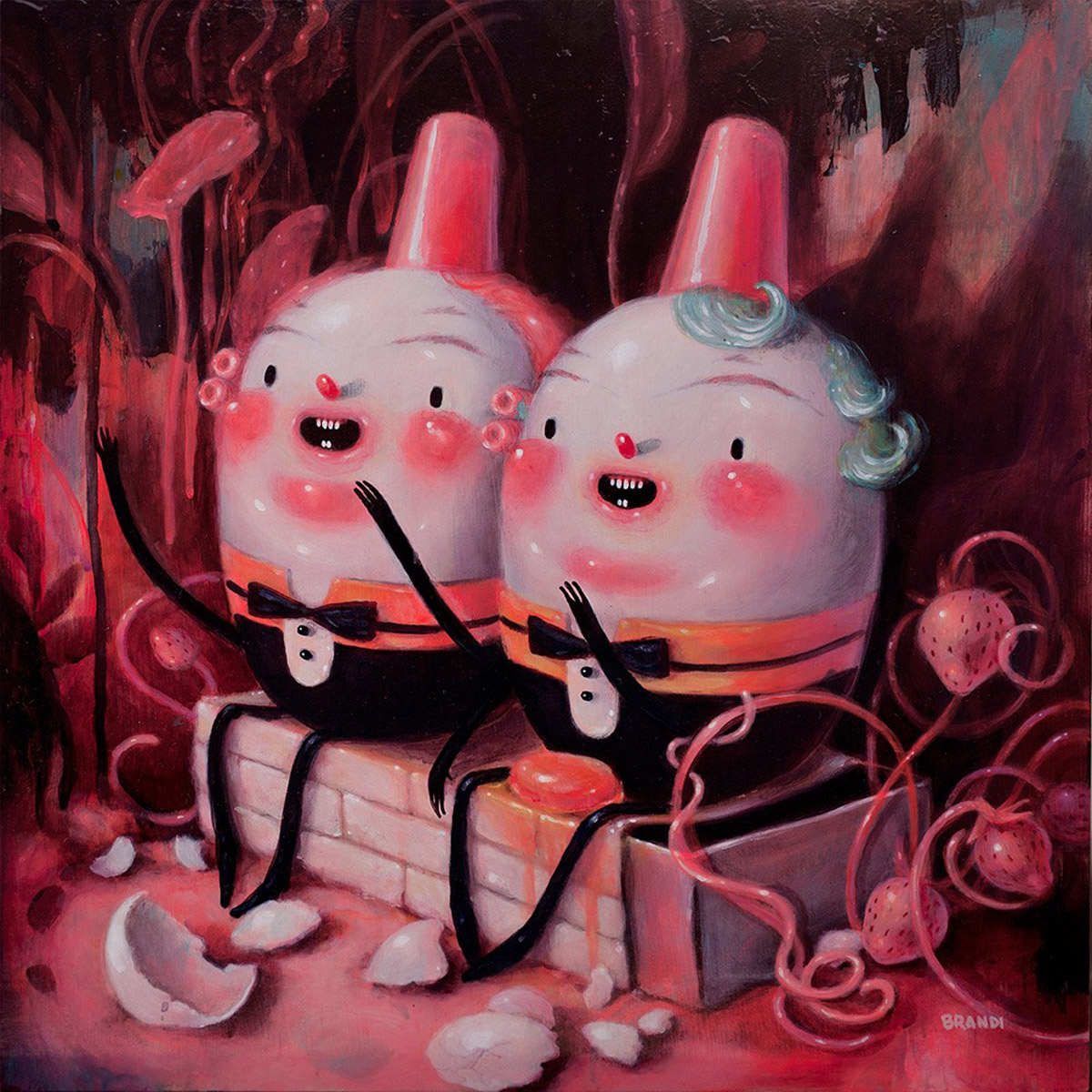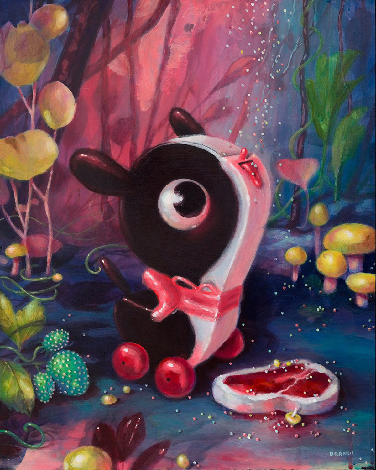New work by So Cal-based pop surrealism painter Brandi Milne. Her solo exhibition “Once Upon a Quiet Kingdom” opens at Corey Helford Gallery (Los Angeles) on August 19th. More preview images from the show below.