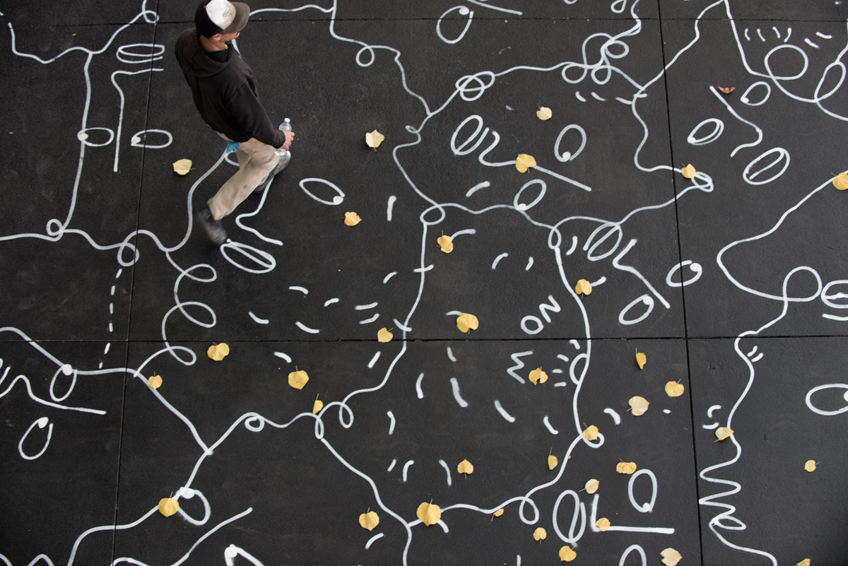 Jeff Hamada: From what I can tell there are two halves to your artistic process—the initial part where you draw a spontaneous line across whatever happens to be your canvas, and the second part where you examine the shapes and fill them in according to a system you’ve developed. Was it a gradual process, to come up with this “system”? Or was it more of a light bulb moment?