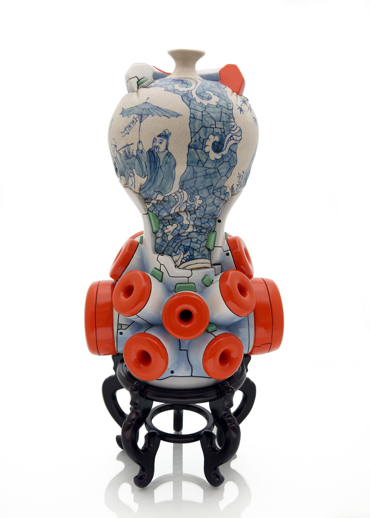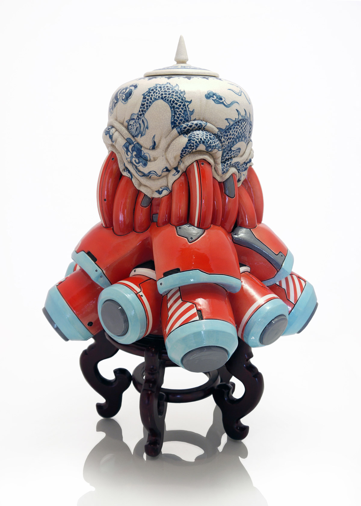 A series of unique ceramics by Vancouver-based artist Brendan Lee Satish Tang. Having grown up in a remix generation of electronic music and “mash-ups,” Tang’s unique visual and intellectual reconfigurations draw from a range of pop culture and art history as a way of exploring themes of cultural appropriation and hybridity. Watch a video profile on Brendan from CBC’s Exhibitionists series, and see more of work below or on display at Burrard Arts until February 17.