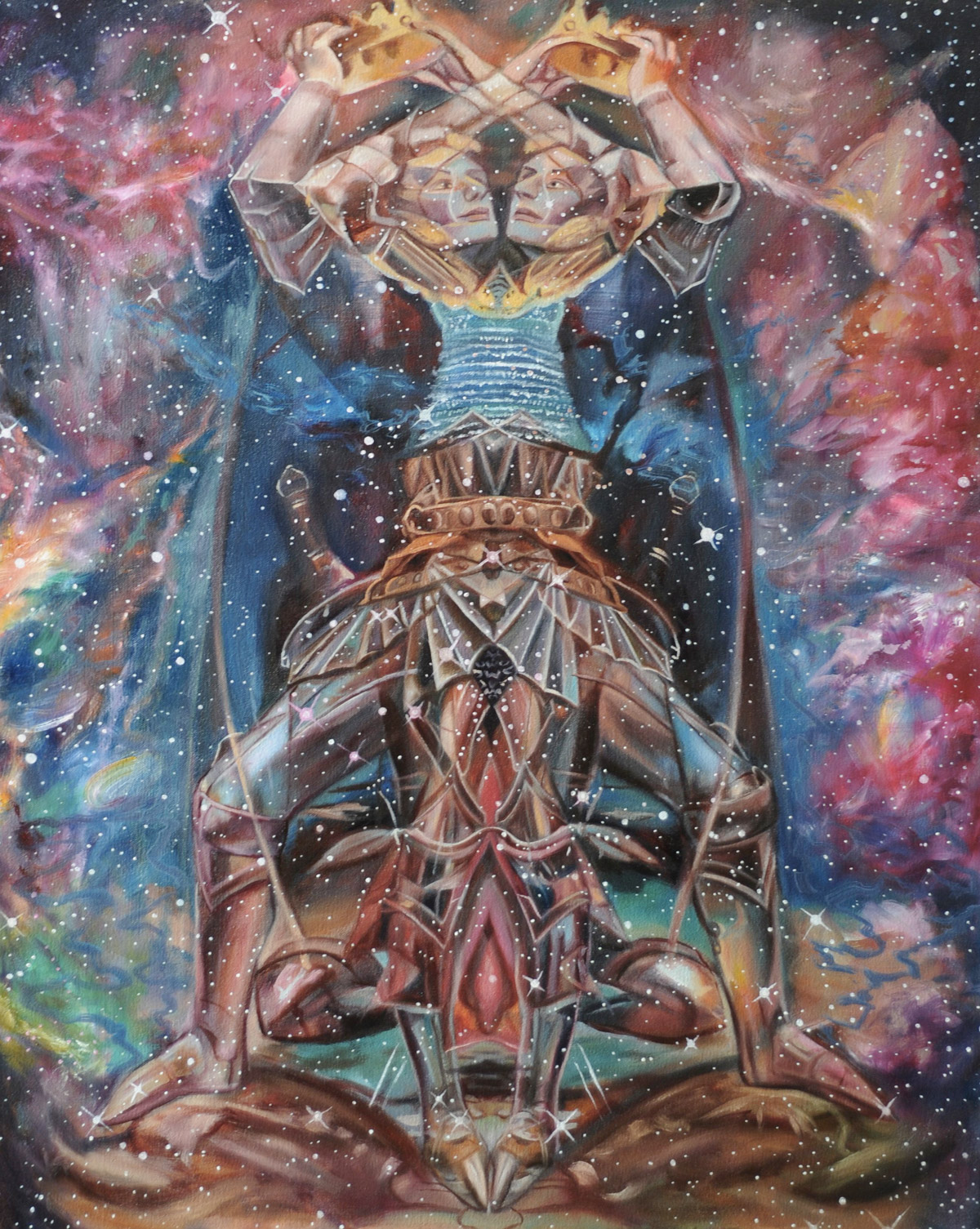 Michelle Tourikian: My current work focuses on combining space imagery with statues of Greek Gods. This combination of imagery implies a connection between divinity and space, which could also be thought of as the natural world. Nature is both beautiful and merciless. Much like nature, the Greek Gods were also often volatile figures, so my work could be seen as a celebration of the magic and unpredictability of the natural world.