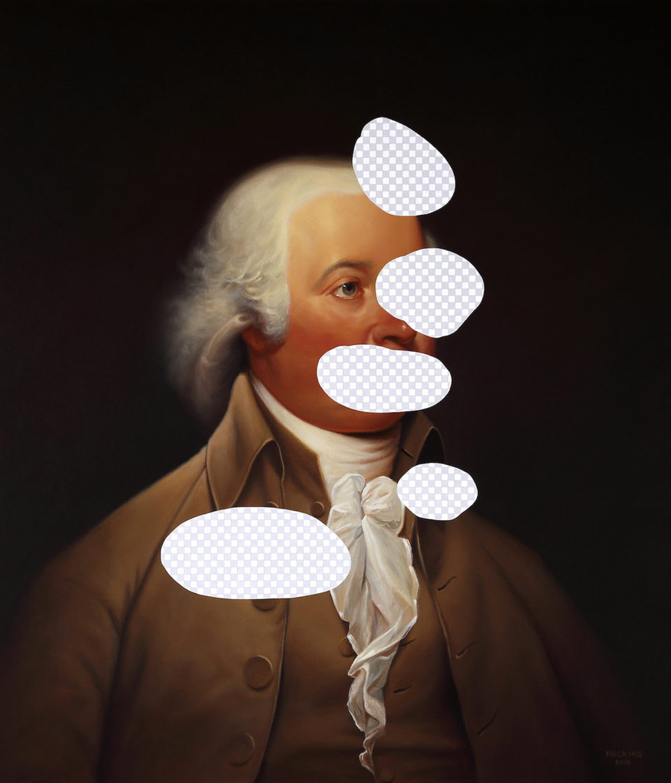 New work by Colorado-based artist Shawn Huckins (previously featured here). While initially appearing like digital alterations, Huckins’ latest series is actually made up of hand-painted erasure marks superimposed onto recreations from the White House Art Collection. Raising issues of history, and its potential obliteration, Huckins questions one’s ability to leave a lasting mark on the world anymore, especially in light of the current administration and the temptation to re-create reality with the click of a button or impromptu tweet. As he states: