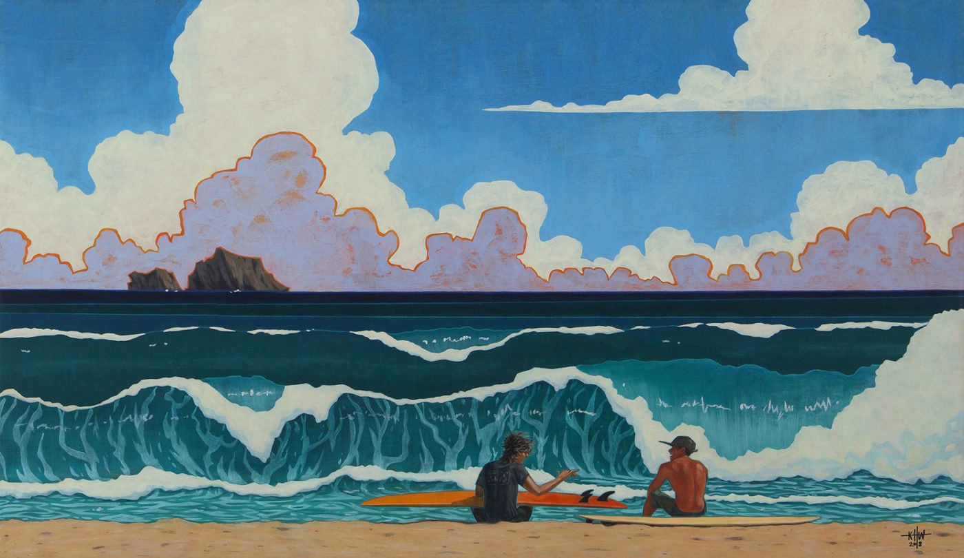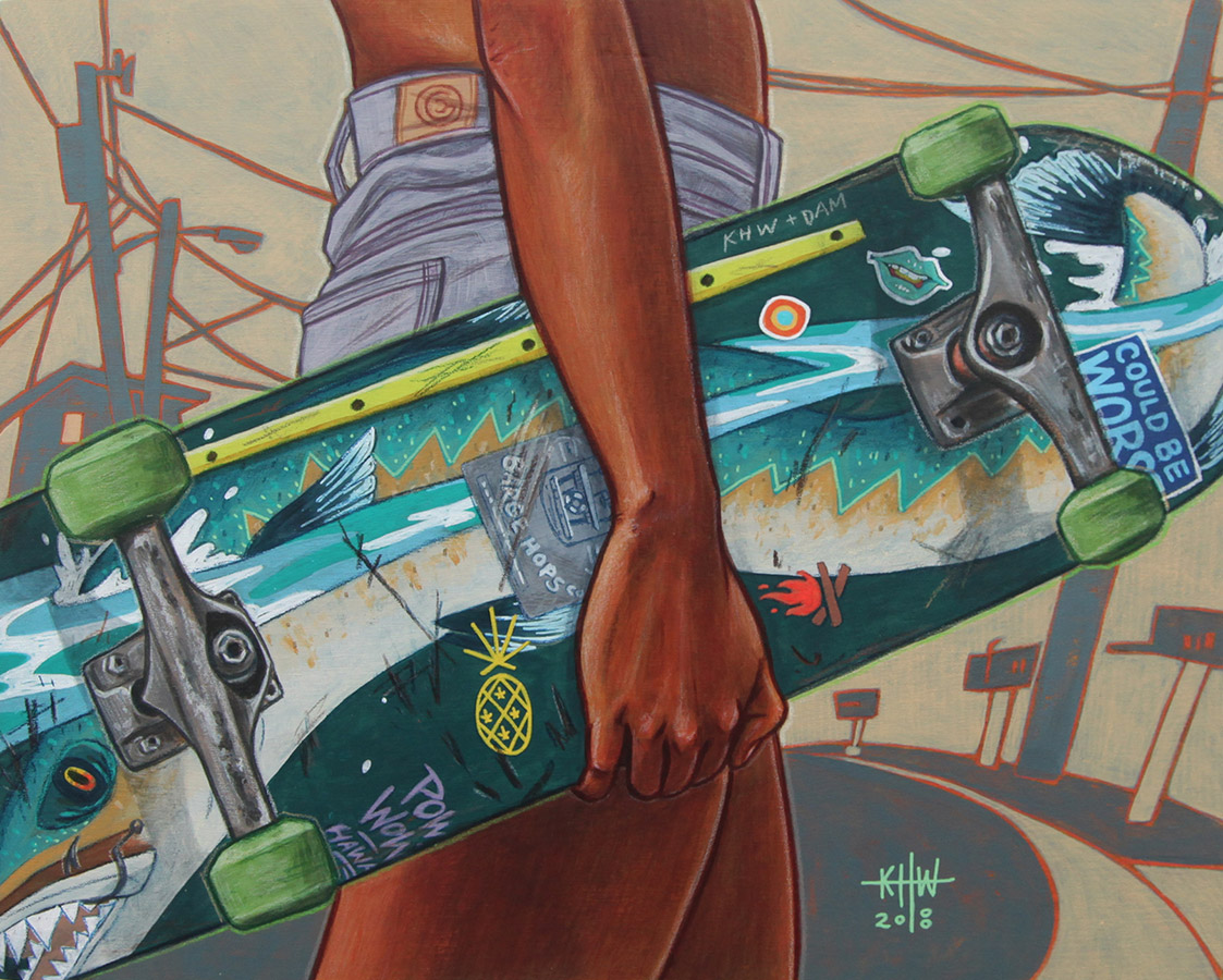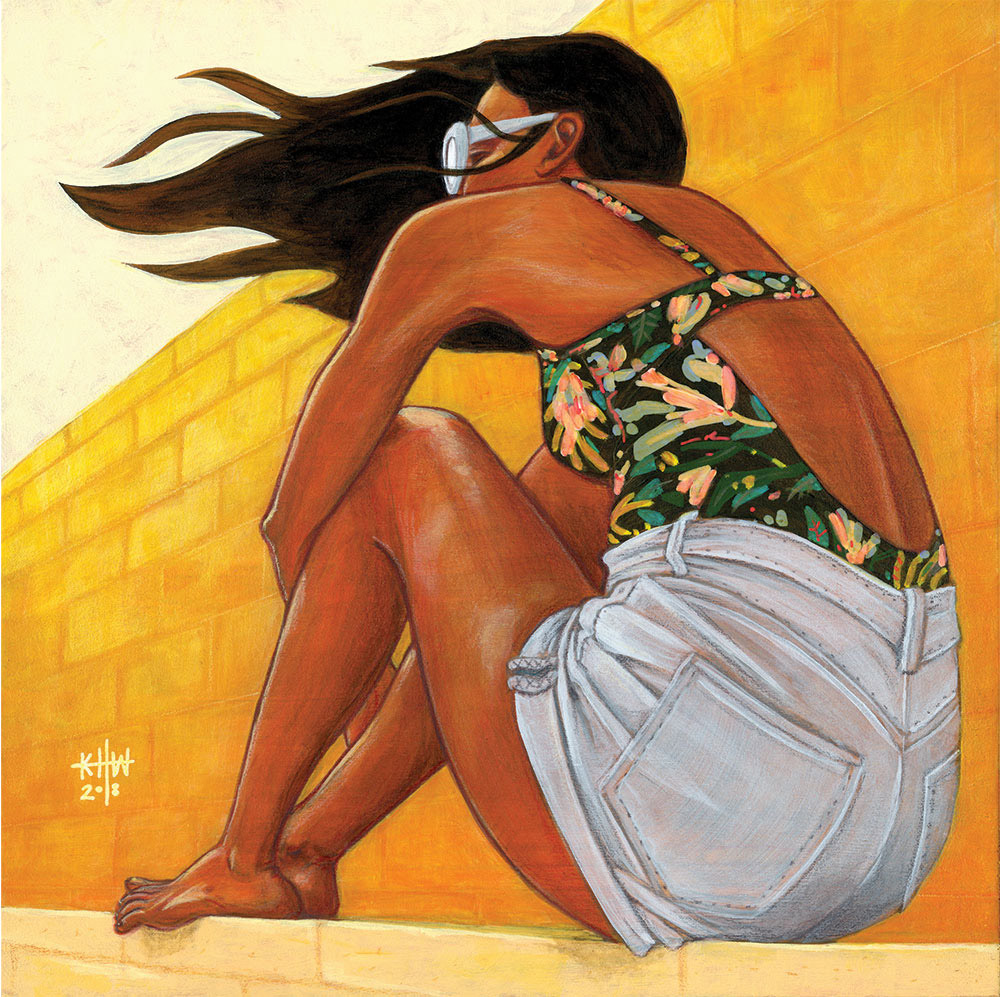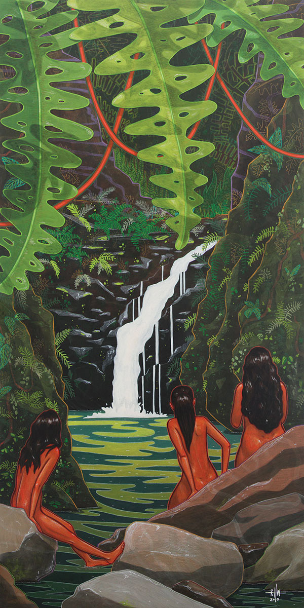 Here’s a selection of new work by illustrator Kate Wadsworth, created for her first solo show, “28 Summers”. Kate moved back home to Hawaii after spending many years across the country, and these works are nostalgic reflections of the endless summer days of her childhood. All of the pieces are acrylic, colored pencil and marker, on wood panels.