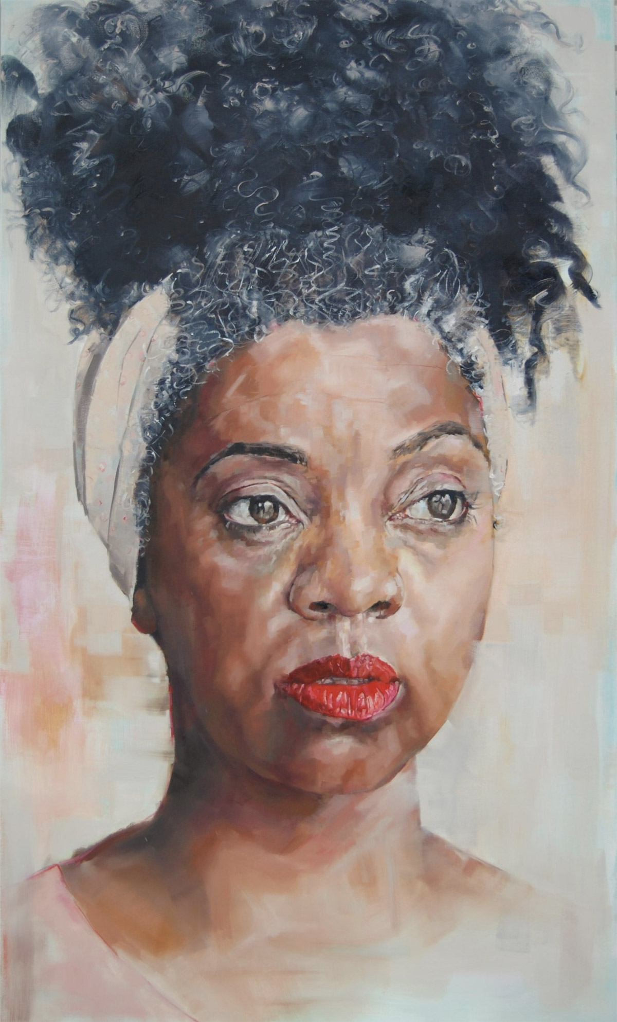 “The mature man is distinguished with silver hair, ruggedly handsome with age and wise with his years. He is visible and accepted. The 40+ woman is perceived as old with grey hair, haggard with age and invisible with her years. This dichotomy is grotesque. For she is vibrant, intelligent, strong and beautiful. She matters… For as long as I can hold a paintbrush, I will celebrate inspirational 40+ women on canvas.”