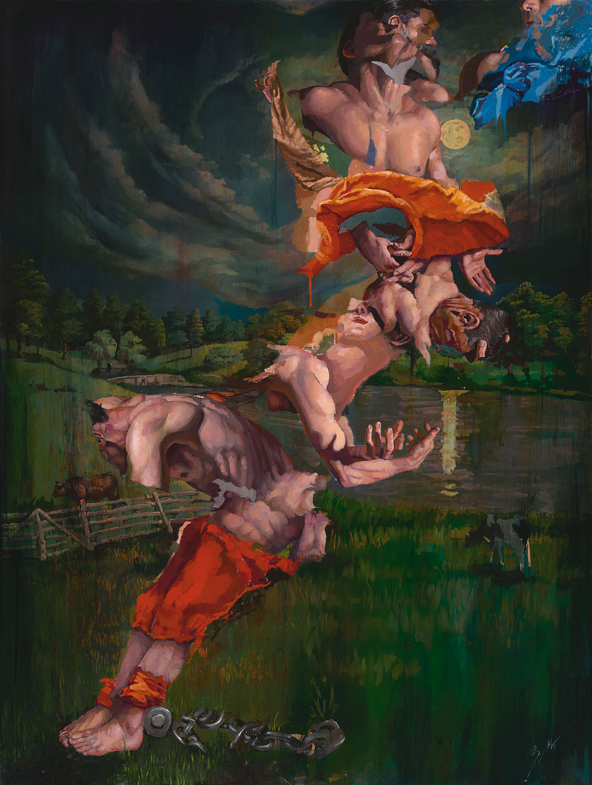 “When making a painting I enjoy finding ways to rearrange an image or introduce marks that are unexpected and then respond to these marks. Working in this way seems to me a microcosm for life in that things are constantly changing; being broken and reassembled and infinitude of times over in each moment. Often, I find that these paintings become a mishmash of ideas, images and half-truths that amount to a ghoulish collection of the sum of their parts.”