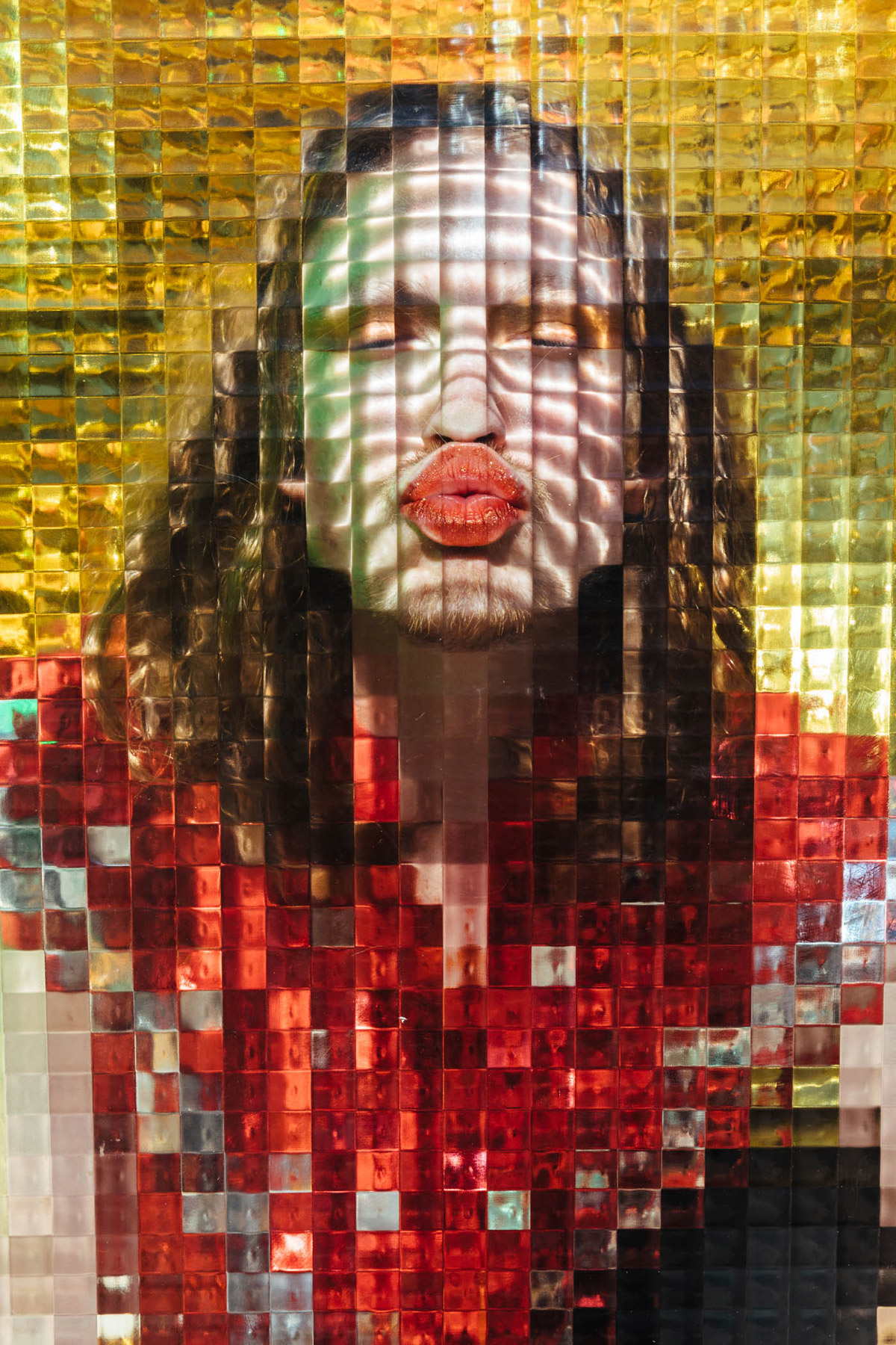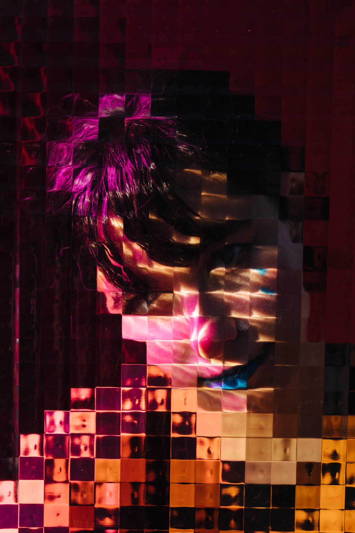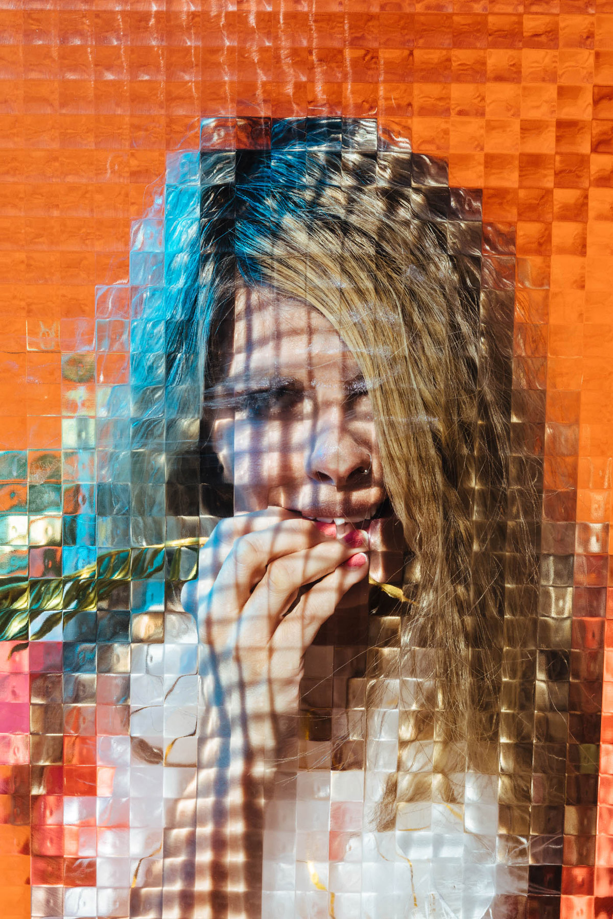 On a technical level, I wanted to implement the glass and studio setup to give the images a collaged and pixelated effect, confusing the viewer as to how it might have been created. For props or makeup, I let each person do whatever they fancied and offered some stylistic influence if asked. I found that having the glass in front of people really helped them let their guard down and not feel self-conscious, props were another extension of that.