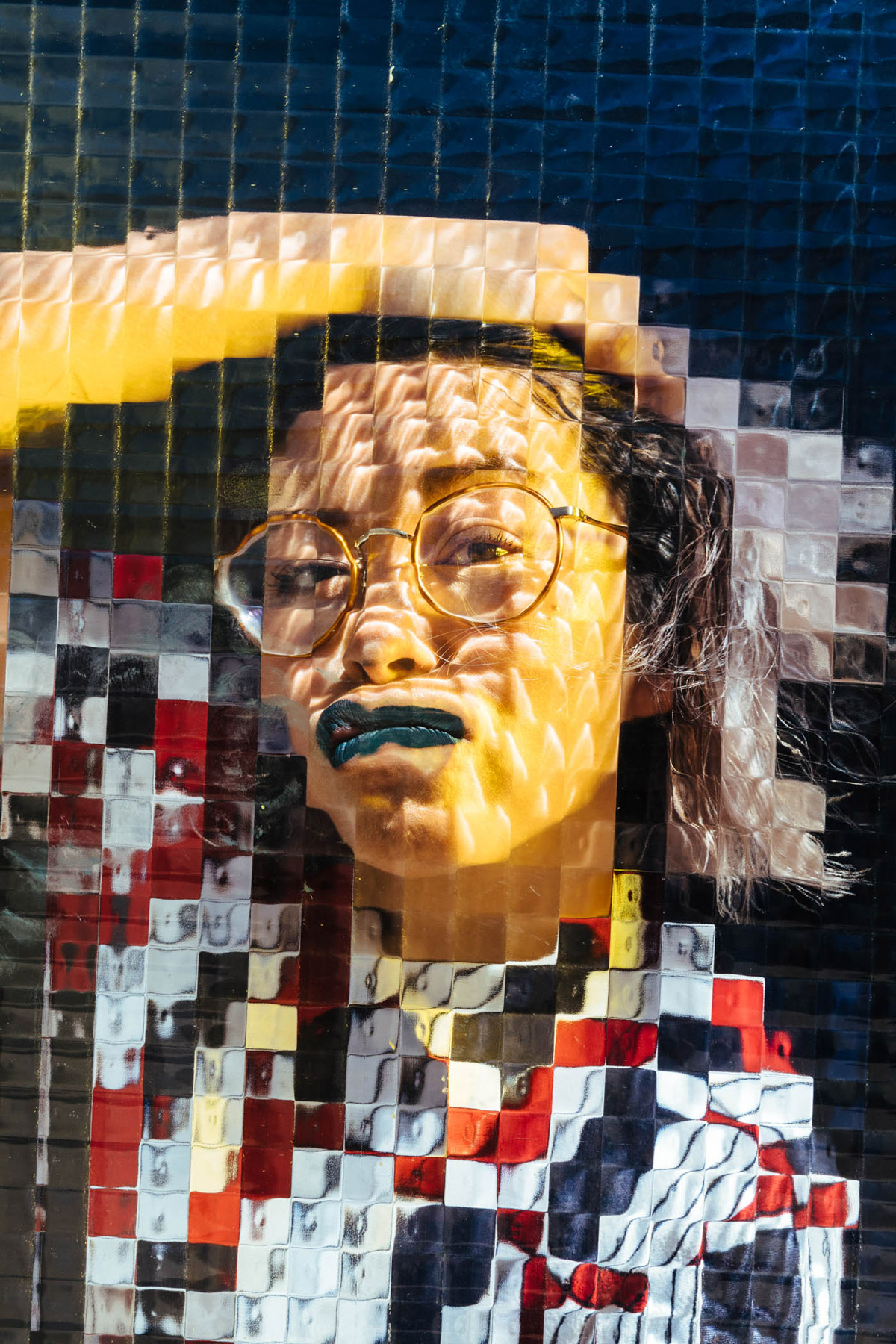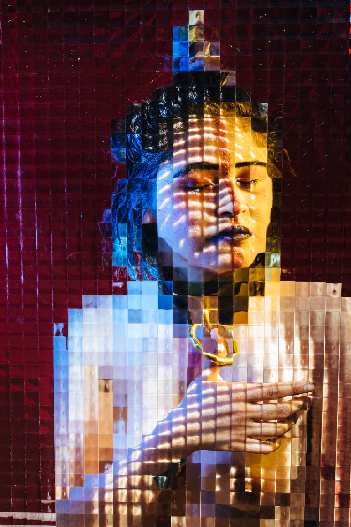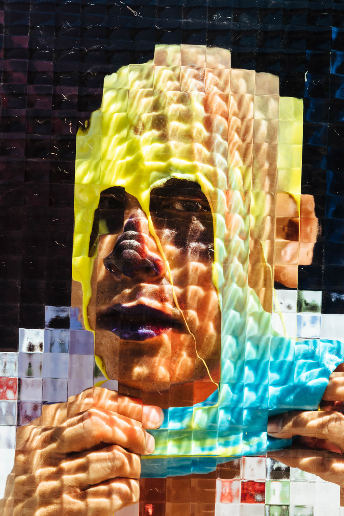 On a technical level, I wanted to implement the glass and studio setup to give the images a collaged and pixelated effect, confusing the viewer as to how it might have been created. For props or makeup, I let each person do whatever they fancied and offered some stylistic influence if asked. I found that having the glass in front of people really helped them let their guard down and not feel self-conscious, props were another extension of that.