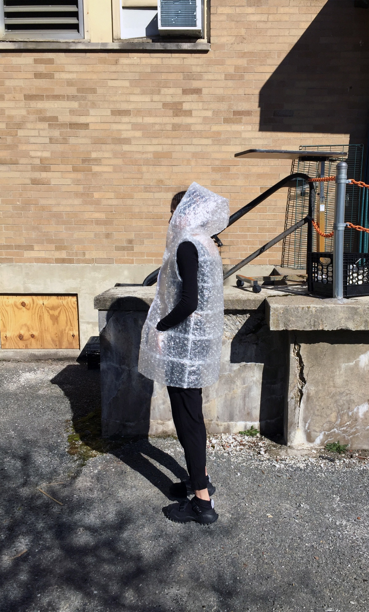 From a button down made of Dover Street Market tissue paper, to a bubble wrap jacket and badminton-birdie cleats, McLaughlin tries as much as possible to keep things in their ‘natural’ state and prioritize the idea rather than its practicality. As she states, “I encourage people when looking at my projects to keep an open mind and not take it too seriously!”
