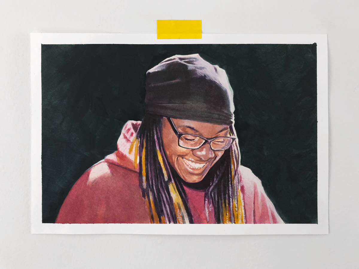 A selection of gouache paintings from “Music Makers” by Los Angeles-based artist Emilio Canton. This on-going series serves as a tribute to the music makers Canton admires most.