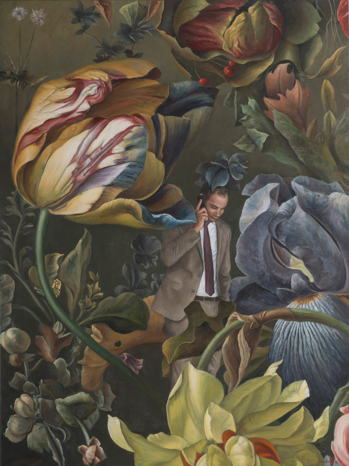 Australian artist James Guppy explores the history of paint and value. Drawing on the Tulip hysteria in Holland during the early 1600s — regarded as the first modern economic bubble — and the trend in still life and Dutch flower paintings that followed, Guppy’s series plays with the relationship between art and commerce: