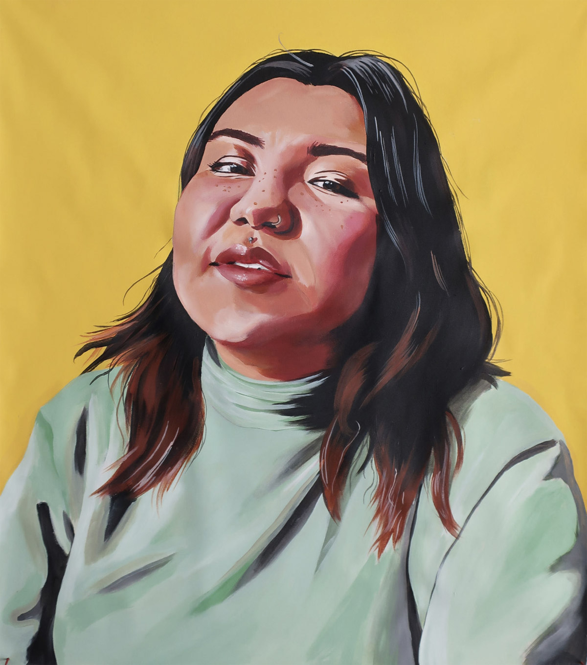A selection of vibrant portraits by Edmonton-based artist Lauren Crazybull. Exploring the tension and power within portraiture, Crazybull focuses on the gaze of her subjects in an effort to create personal expressions that reflect her own humanity and desire to connect with her viewers. As such her work is part of important conversations surrounding Indigenous advocacy and identity, and how those identities and experiences can be represented through the gaze that artistry casts. See more images below.