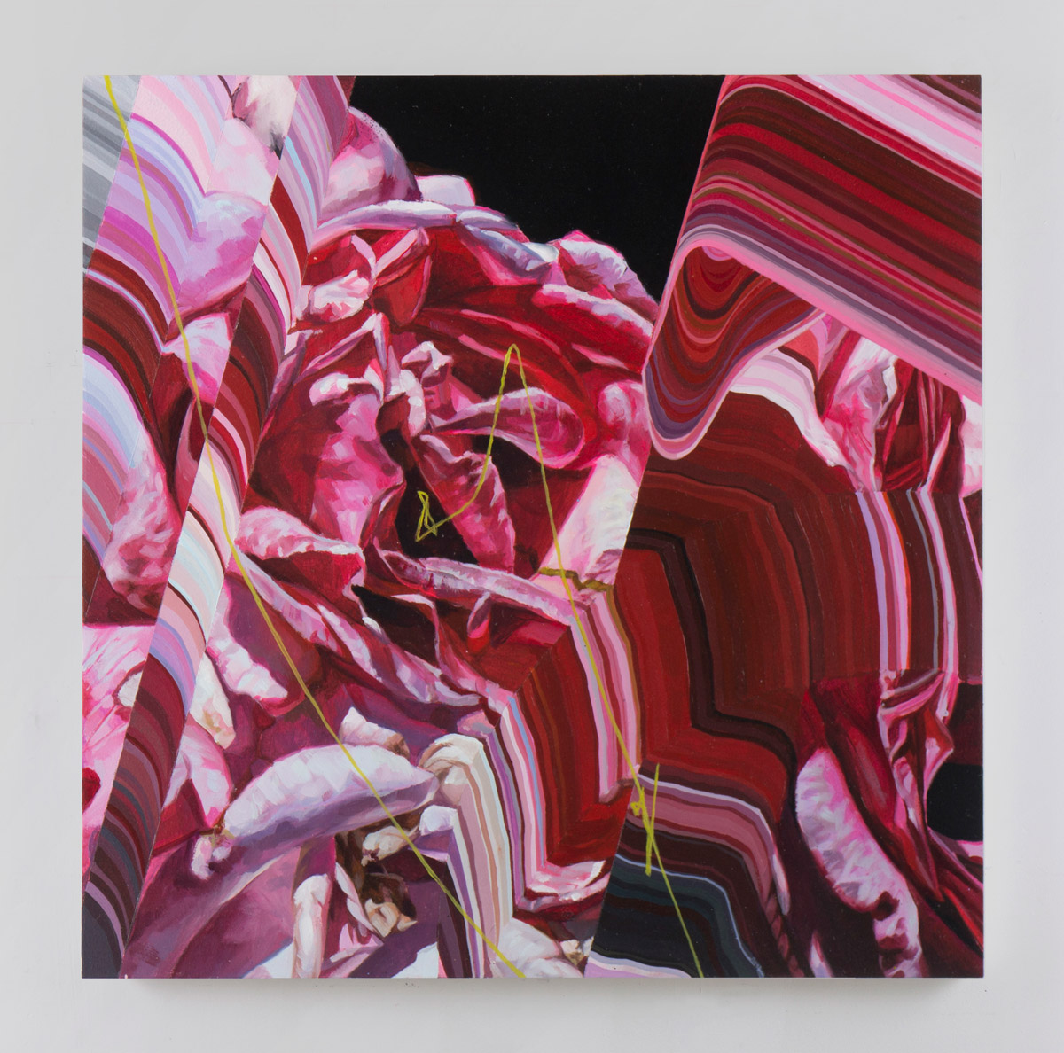 Since coming out of university I’ve always been a figurative guy. But being an over-thinker I would spend almost an equal amount of time preparing for a piece versus actually painting it. Not that I think that’s bad, it’s just a buttload of time to put into each thing. When I approach figurative work I’m sucked into a neurotic world of building characters and narratives. Message first, execution second. I want the message to be impactful, honest and culturally relevant so I would go deep into my own and my peers’ experiences. My tableau paintings explore parts of the human condition I found relatively overlooked in art from my perspective: credulousness behaviour, irreverent attitudes, narcissism, drug consumption, sexual taboos and violence. I love bashing my viewers’ heads with complex paintings that might say something about them they’re unwilling to discuss. And if I’m going to be honest, there are some that speak to my own hidden feelings. The whole time I was wrapped up in this dark sociological stuff I would re-evaluate what my purpose as an artist was. I felt the need to unhinge myself from trying to make “important” art and try to make more process driven and explorative work. Also, you know, maybe something that can go on someone’s wall might be nice.