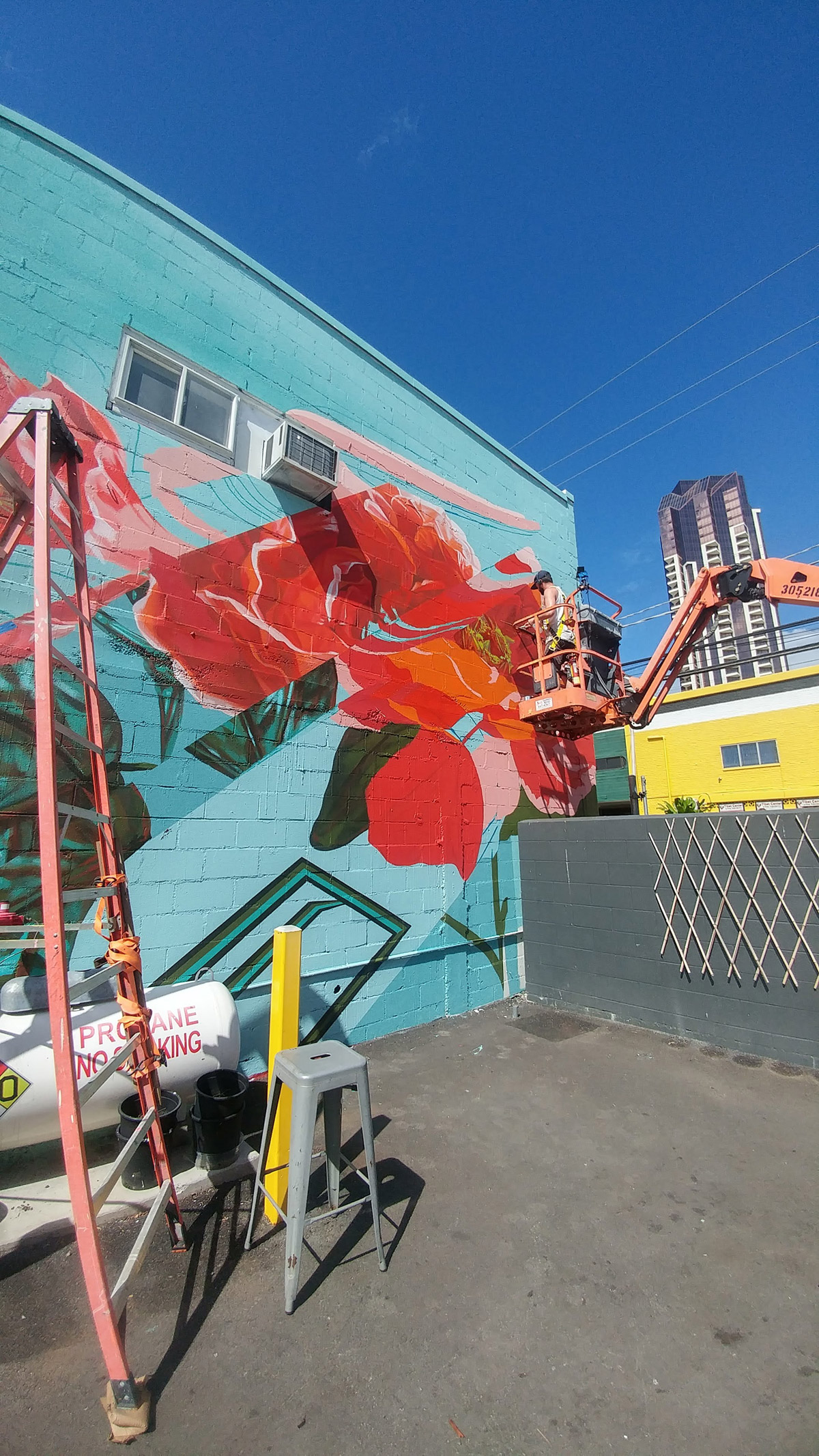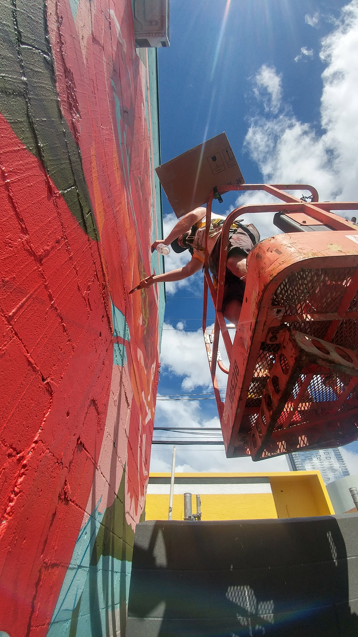 I was usually completely bushed after each day so I, unfortunately, didn’t get to check out a number of POW!WOW! activations. But once I was wrapped I got to hang with the crew before everyone left. Oh, and speaking of crew! On day 3 I turned around on the lift and to my amazement, my VMF posse was standing there with their partners and 3 babies. That’s right, 11 whole lovely humans came to check everything out and show support. Holy moly! I’d go back in a heartbeat, it was so much fun. Mahalo to Jasper Wong, Kamea Hadar, Jeff Gress, the POW!WOW! team and to the neighbourhood of Kaka’ako for being so much fun and supportive.