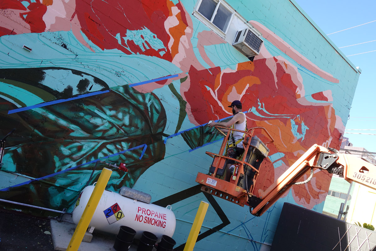 In 2016 I had become a very active curator and creative consultant for festivals and events in Vancouver. This became, however, a massive detriment to my career as a painter. There’s a lot of energy that goes into that type of work, festivals are fucking nuts, especially when we started the Vancouver Mural Festival in 2016. I should also mention the type of work I was making wasn’t exactly the most palatable for these types of events so it was almost impossible to facilitate and include myself. But, over the last couple years, I’ve come to terms with my time management. I’ve also come to learn that while I love helping create lots of cool opportunities and nurture talents, I’ve got to remember where I came from and what makes me the happiest. Becoming more comfortable in having trust in others and letting go of control has played a big part in me getting back into the painters chair or lift.