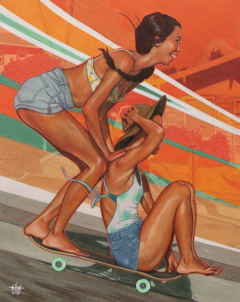 Kate Wadsworth: When did you leave Hawaii and how often do you come back to visit? Is much of your work inspired by your childhood? A lot of your work has a very dreamy/nostalgic feeling. (I grew up on Oahu and I feel a strong connection to your work, with the subject matter: children/style of houses/nature and tropical landscape).