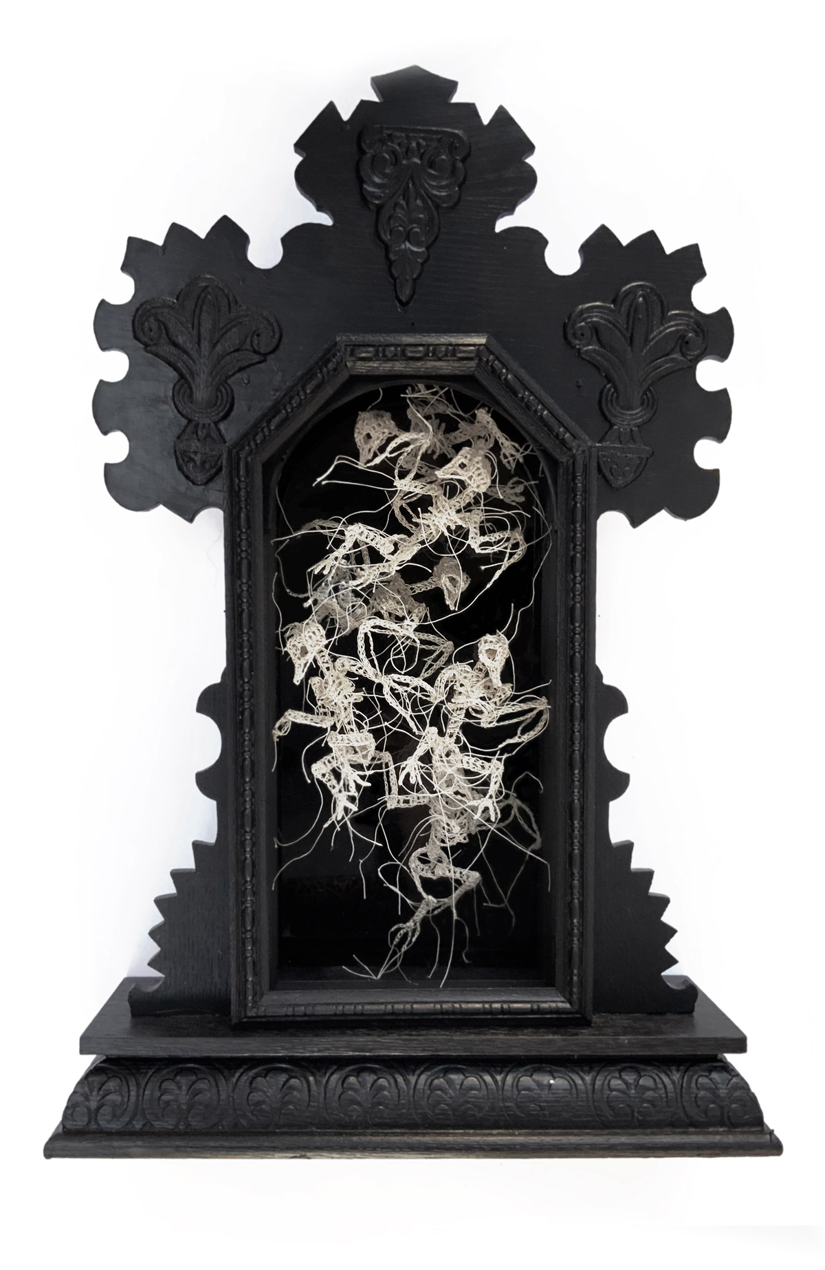Caitlin McCormack’s solo exhibition, “GRANNY” opens in San Francisco at Hashimoto Contemporary this Saturday! The Philadelphia-based textile artist explores gender and age, through the use of thread and specifically the technique of crochet. The show is staged like a “funereal viewing for the artist’s future self, consists of works symbolizing a spectrum of events, both real and imagined, pertaining to ancestral mythology and the navigation of trauma”.