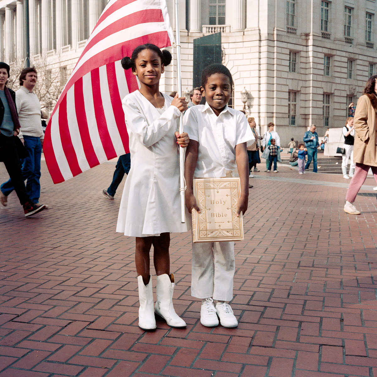 “I photographed people on the streets and at the cultural parades and protests that defined the Reagan era. When, in 2016, the United States came under the rule of another conservative president who used anti-immigrant rhetoric as fodder for his political gain, I brought these photographs back into the public eye. I wanted to place attention on the elegance of intimate moments in the public sphere as well as the need for loud discourse in our public spaces.”