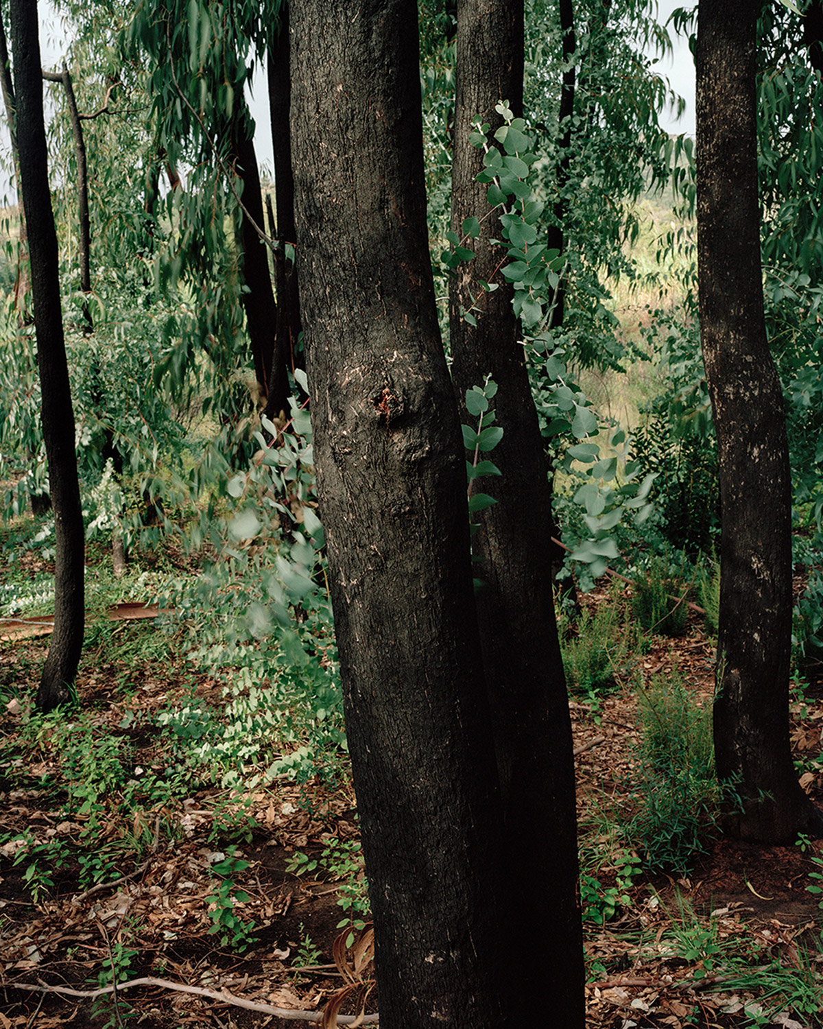 “The initial feeling of wonder baffled me. I went back often to these parts, to see if I could find out why I remained under the spell of such utter desolation. . . At the end of every fire, nature offers up its most violent and shocking landscapes, and yet— as a sign of hope— vegetation finds its way back progressively, despite the rush of power and the stifling heat. . . Is this fascination for blackened territory something to do with it being an example of perseverance and courage— nature’s capacity to adapt in the face of such events? Should it not push us to understand and take care of our environment with more care?”