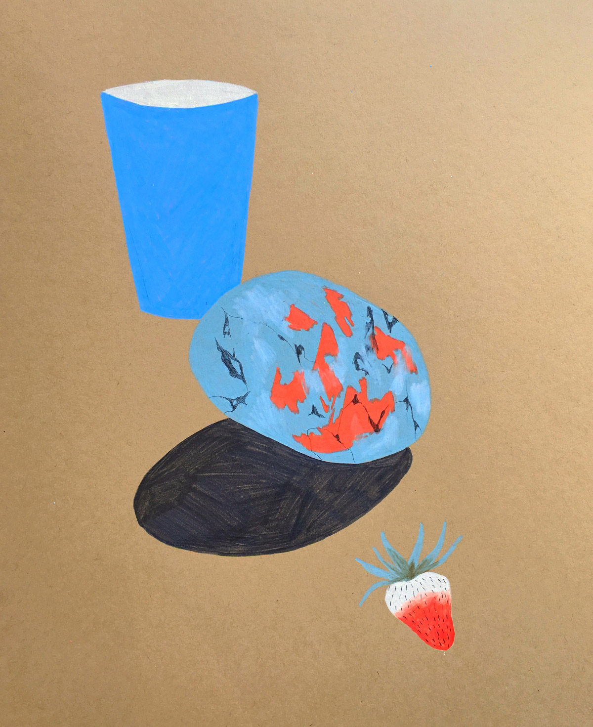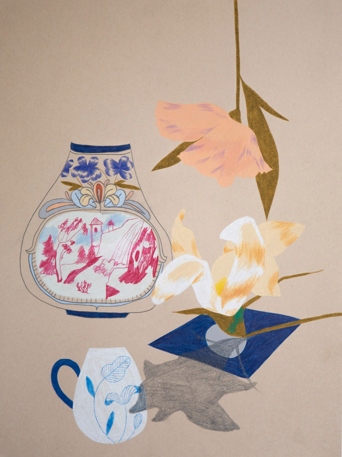 A selection of drawings by Brooklyn-based artist Laura Burke. Her work explores the significance of memory in relation to still lives and begs the question: “Is it possible for a piece to be labeled a still life, when a configuration of objects never existed to begin with?”