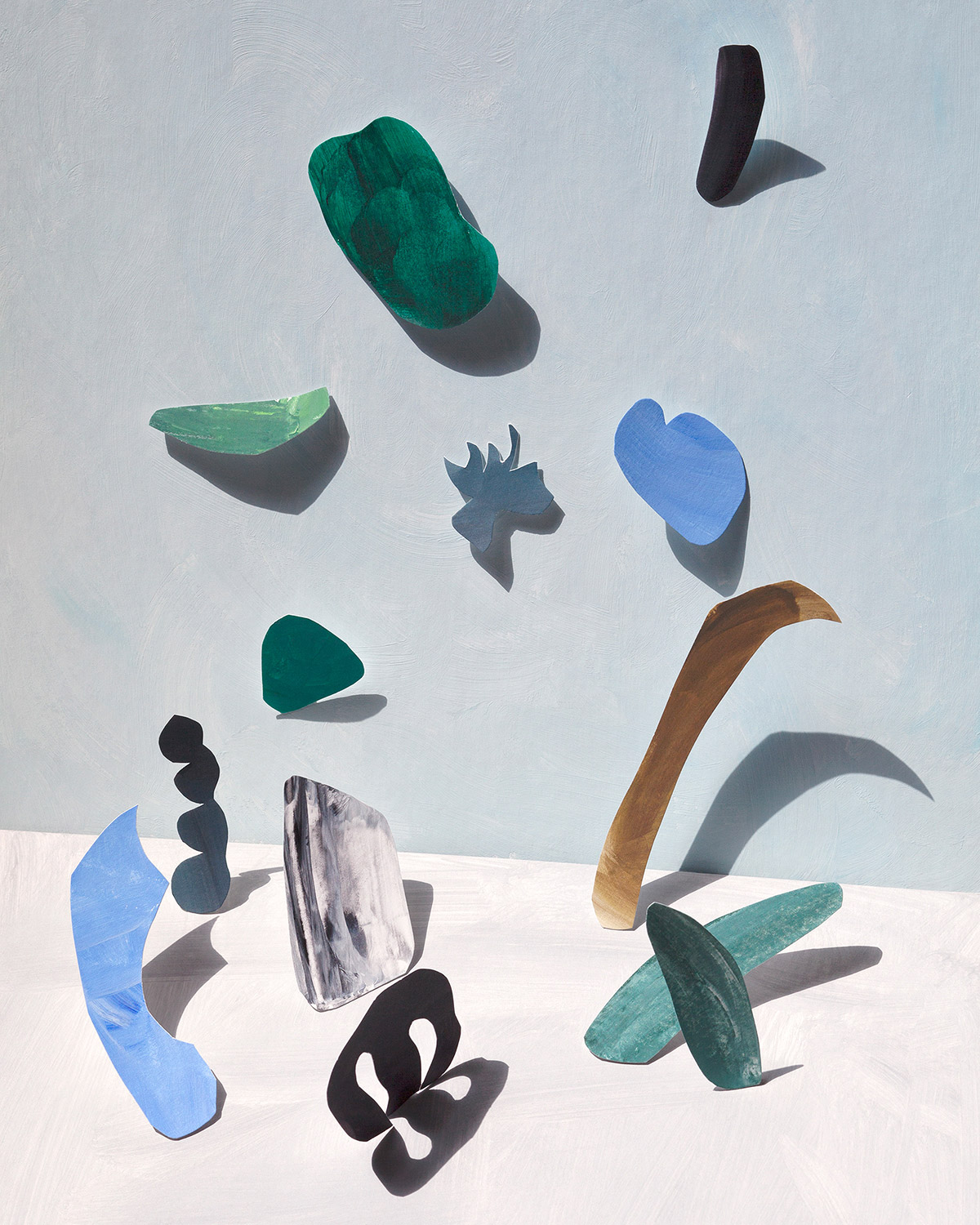 Jang feels that the photographic medium is important to her mixed-media series, in a time when similar work is often made on a computer. She makes every piece by hand, and photographs each still-life she sets up, shadows, brush strokes and all. She sees the work as a small form of resistance to the digital world that we all inhabit now.
