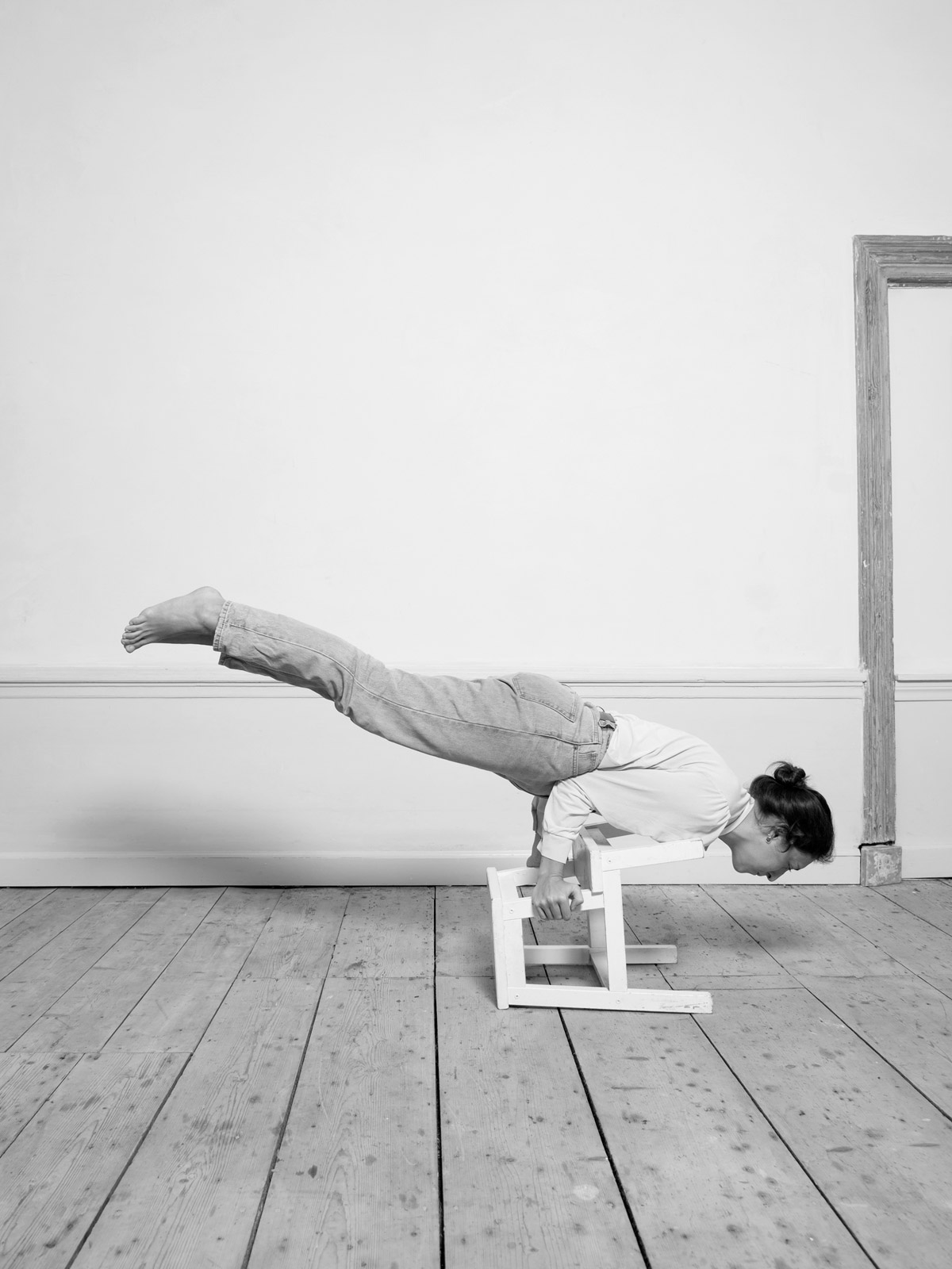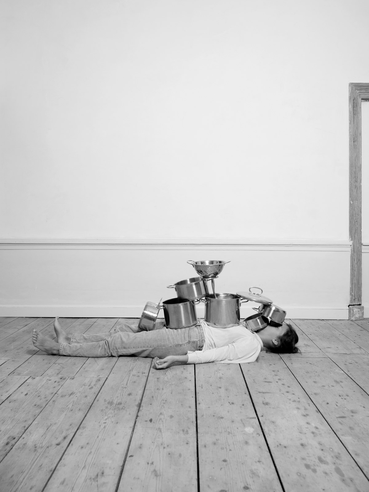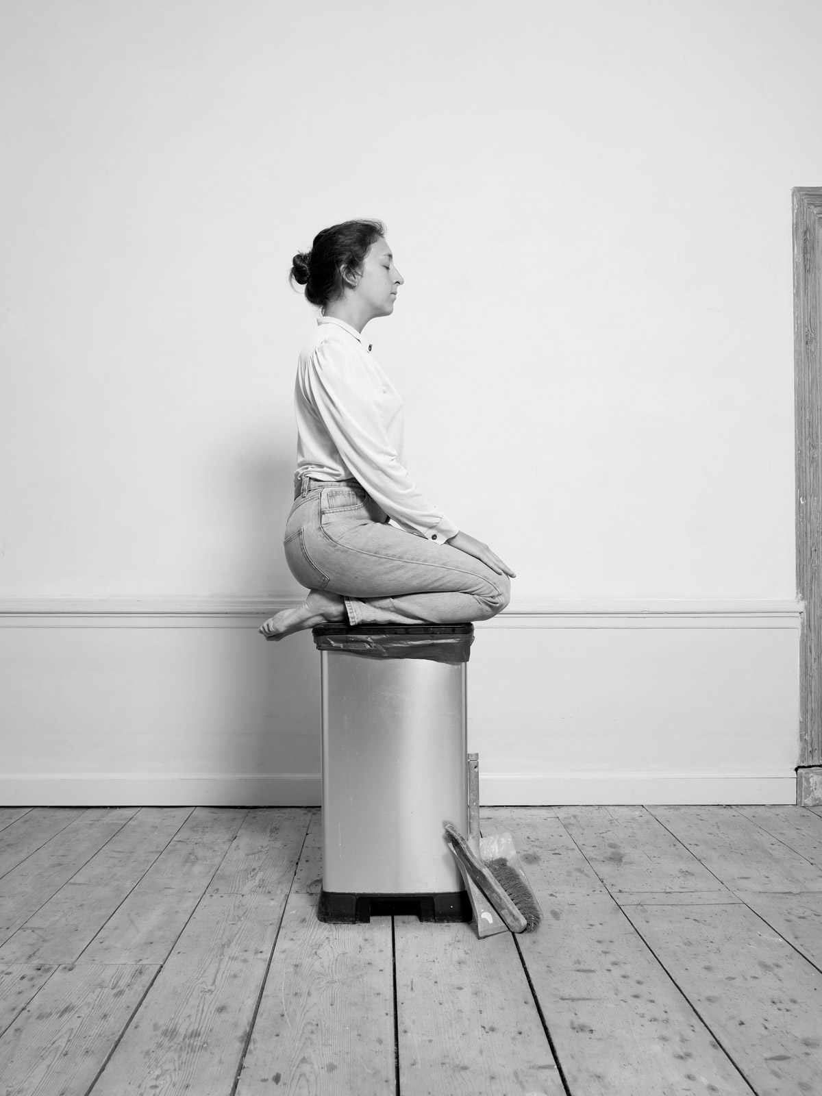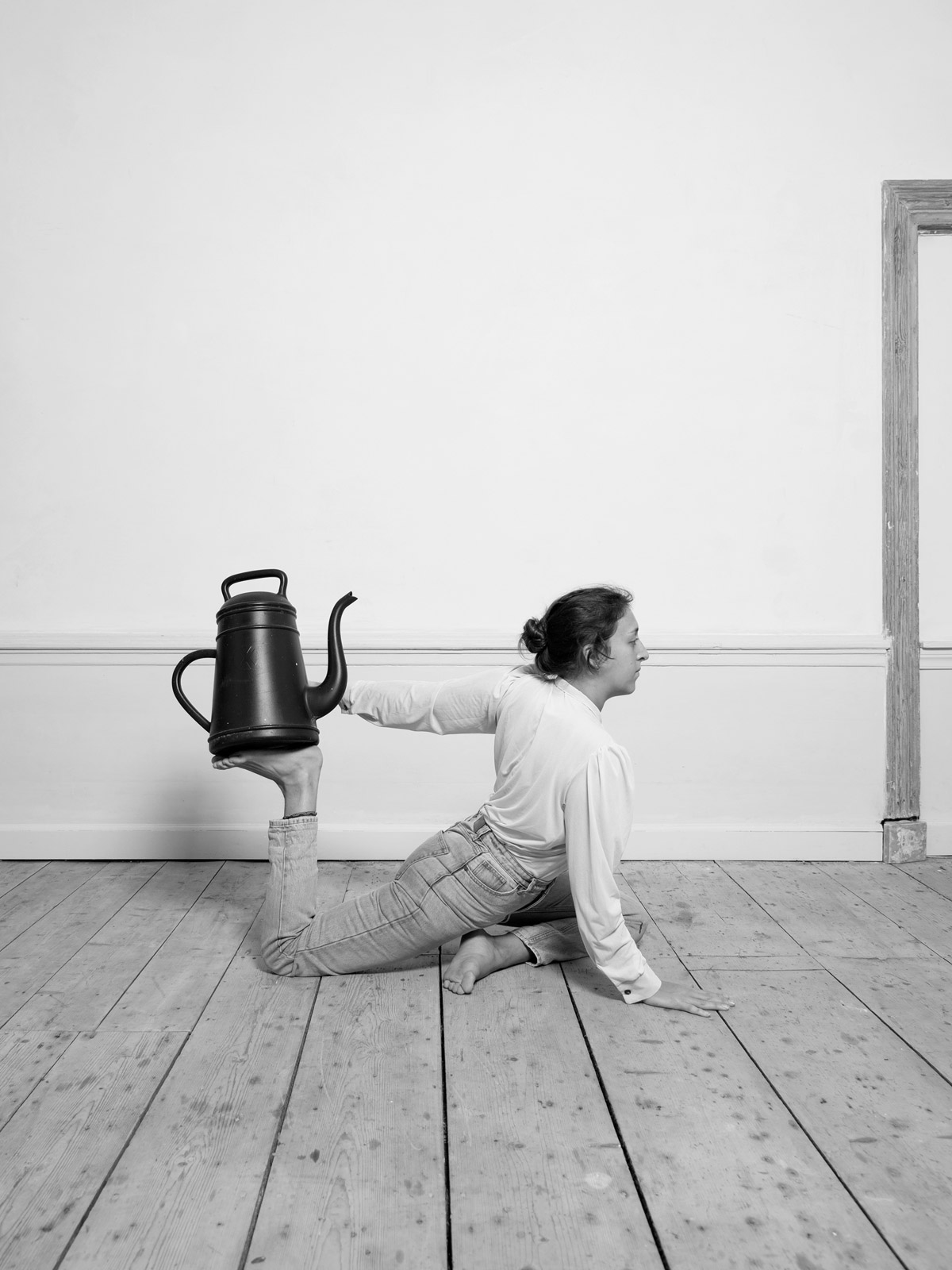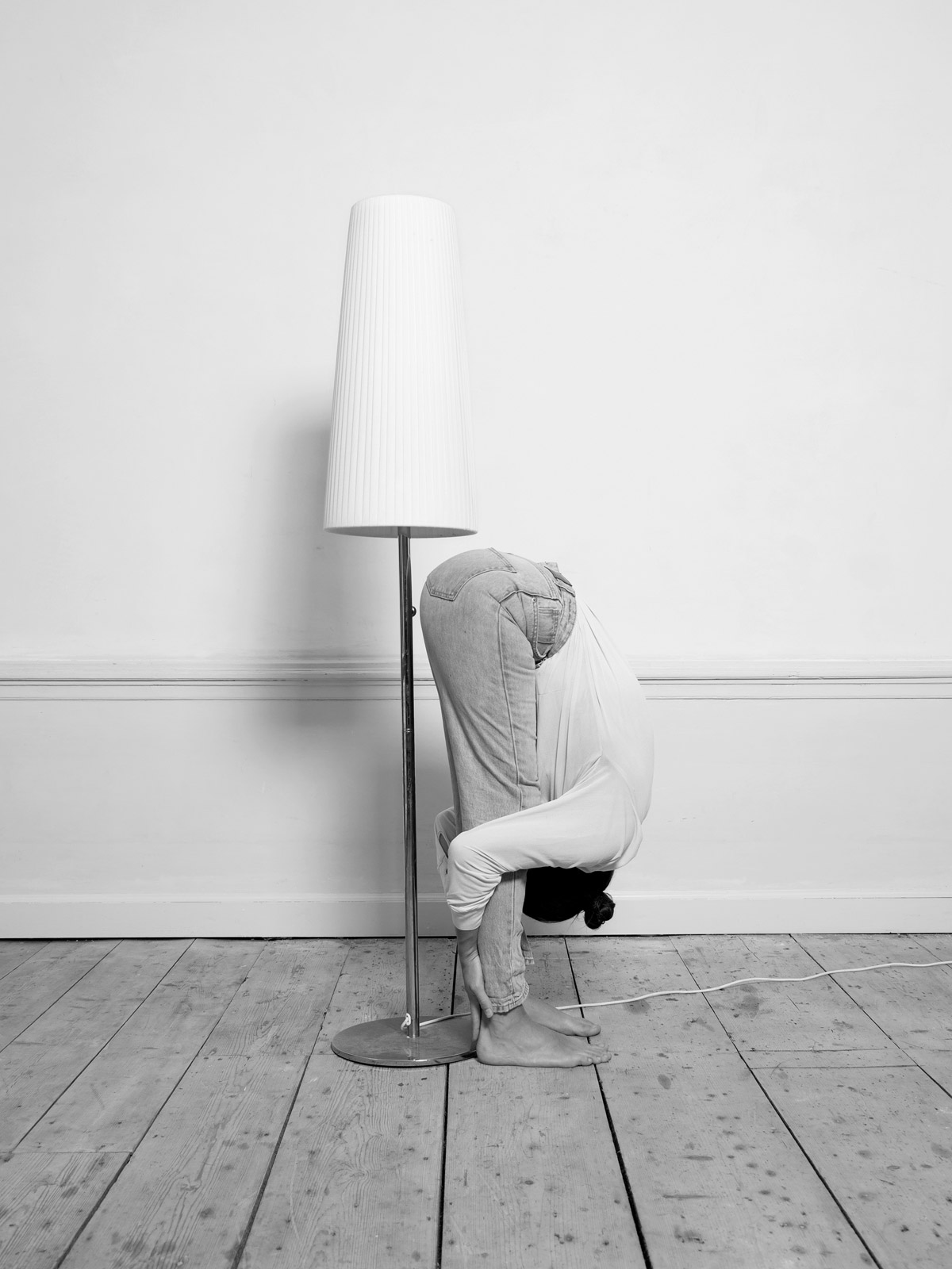 Her recent series, “House/hold”, is a tongue-in-cheek exploration of women’s position in western society. It sheds light on the housework gender gap with a playfully sarcastic series of photographs documenting her ironical solution: a 30 minute yoga session combined with domestic chores. Klenyánszki elaborates: