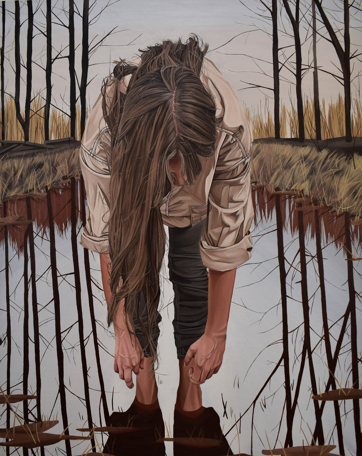 “My painting is led by my exploration and makes me dig deeper than necessary. I often dig where I stand. Focusing on the general state of things in my surrounding context; the dialogue between us humans or the body of society we all are a part of. That is why it is important for me to take a step away from the hole that I am digging and let it fill with the narrative of others. Let others narratives mix with my own, fairytales, fact and fiction. I see my work as their own. Something new that is not mine, yours or ours. A new formulation of recurring questions which, although it is necessary to ask them, do not require an answer. They are needed for us to continue to look for a truth we will never find. To continue in that direction whether it leads us inwards, outwards or keeps us right where we are.”