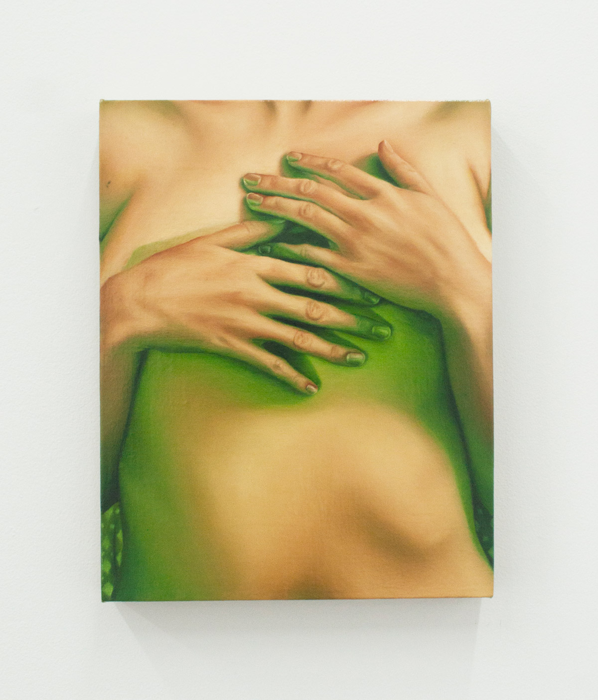 “I create paintings that investigate the body and its relationship to the spaces it inhabits. I paint the surfaces of the everyday, enfleshing material skins. Objects such as windows and linoleum tiles are presented with works that show fragmented views of the body: contrasting materials of banality with moments of intimacy. Together, these works create a nonlinear narrative that explores the subjectivity of the body as it relates to place. The painting process is durational, tender, and engages in deep looking to question the gaze and themes of accessibility.”