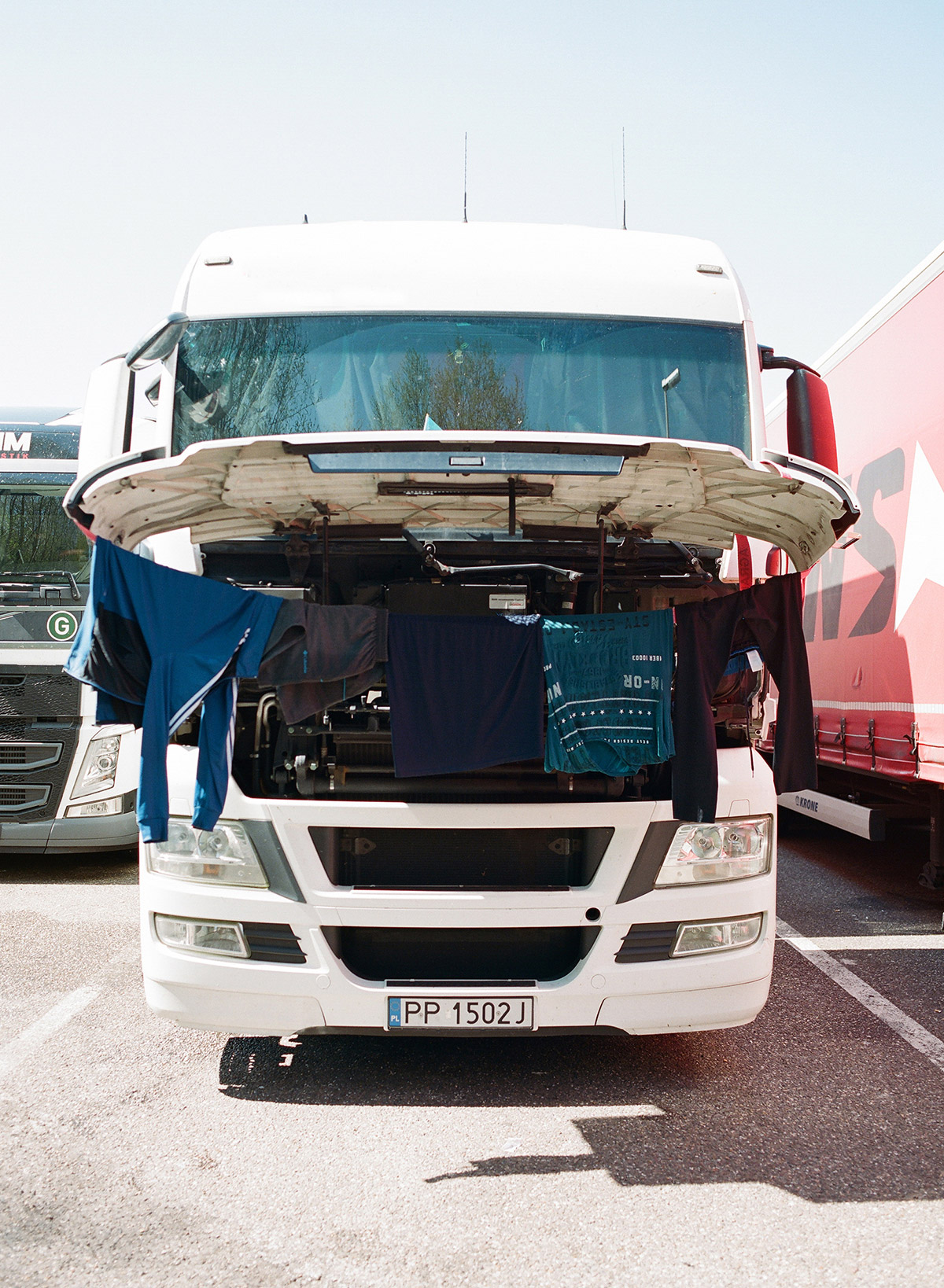 Zara Pfeifer is a photographer based between Vienna and Berlin. Her series “Good street” accompanies truck drivers on their routes across Europe. “The series stemmed from a profound interest in the drivers’ realities while on route”, Pfeifer explains. She documents the working and living spaces in the drivers’ cabins, daily life on the streets, at gas stations, and the large-scale infrastructure that makes it all possible. The finished project includes photographs, interviews, video & sound recordings.