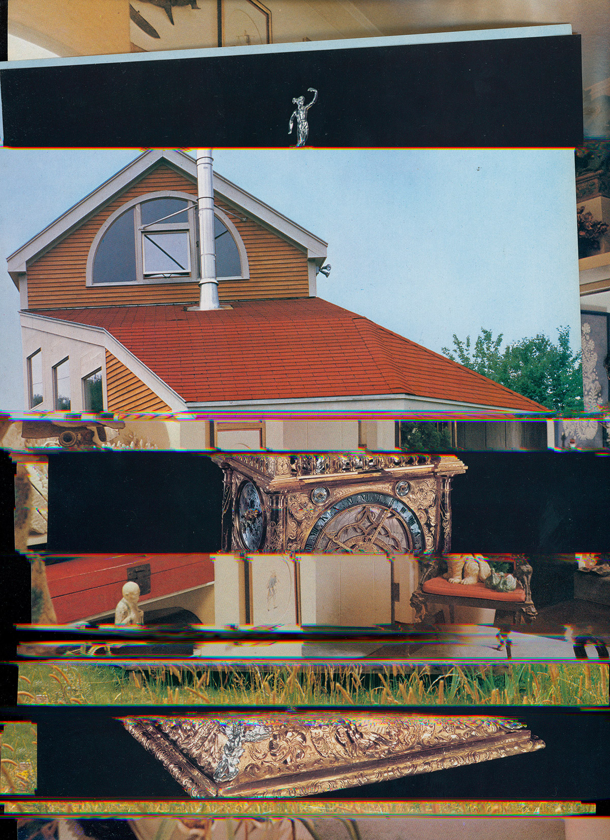 “The collages are made from re-photographed old images, which I have collected over the years. Each image featured is important to my process and research and references previous work that I have created. I made small prints and placed these on my scanner, exposing them to the beam under a black cloth by moving different images around on the flatbed. It is very satisfying as it usually takes me 10 painstaking tripod plates to create a single image.”