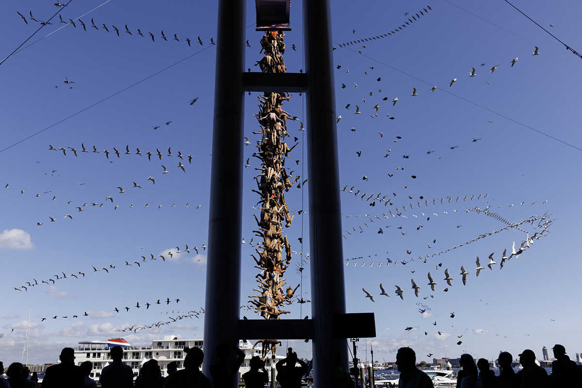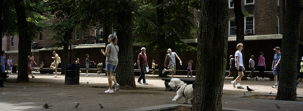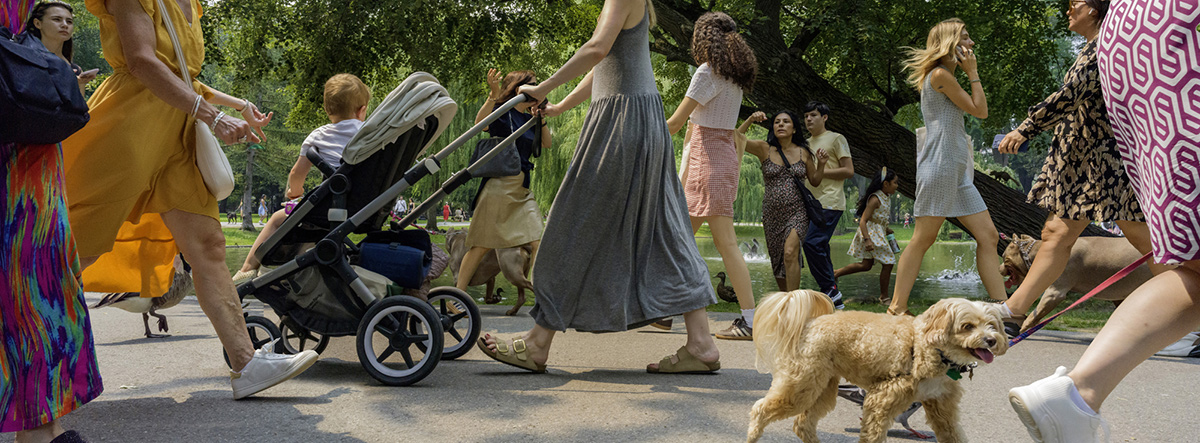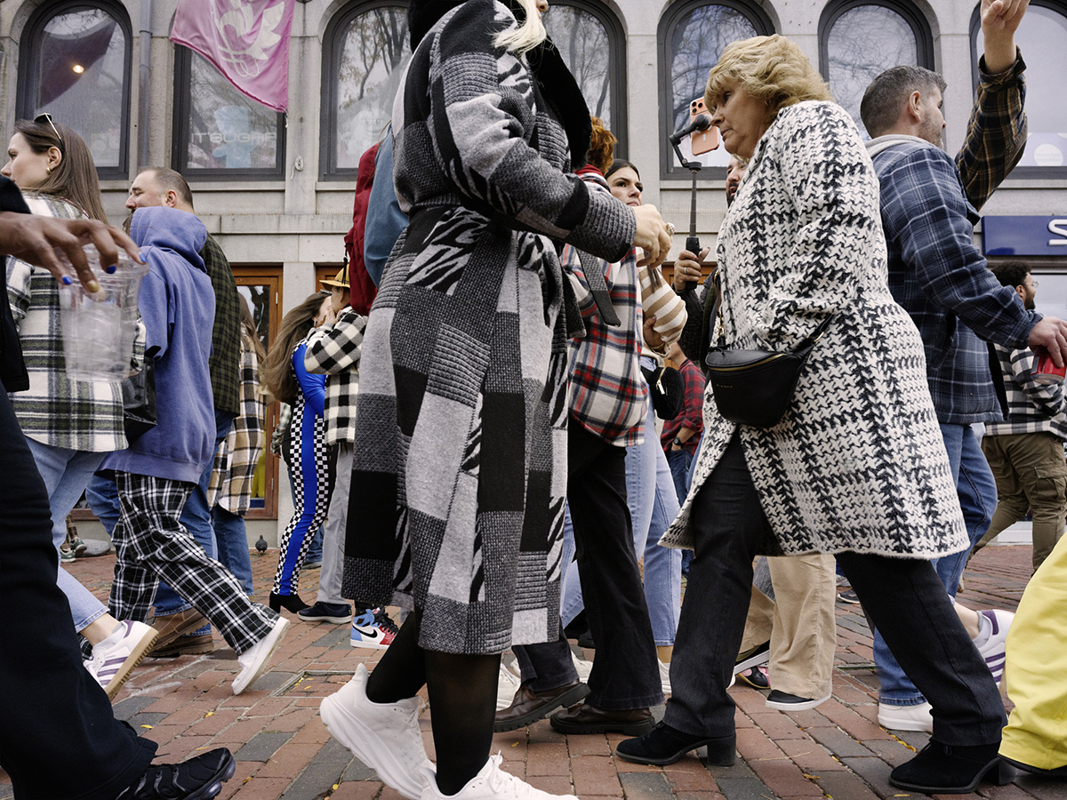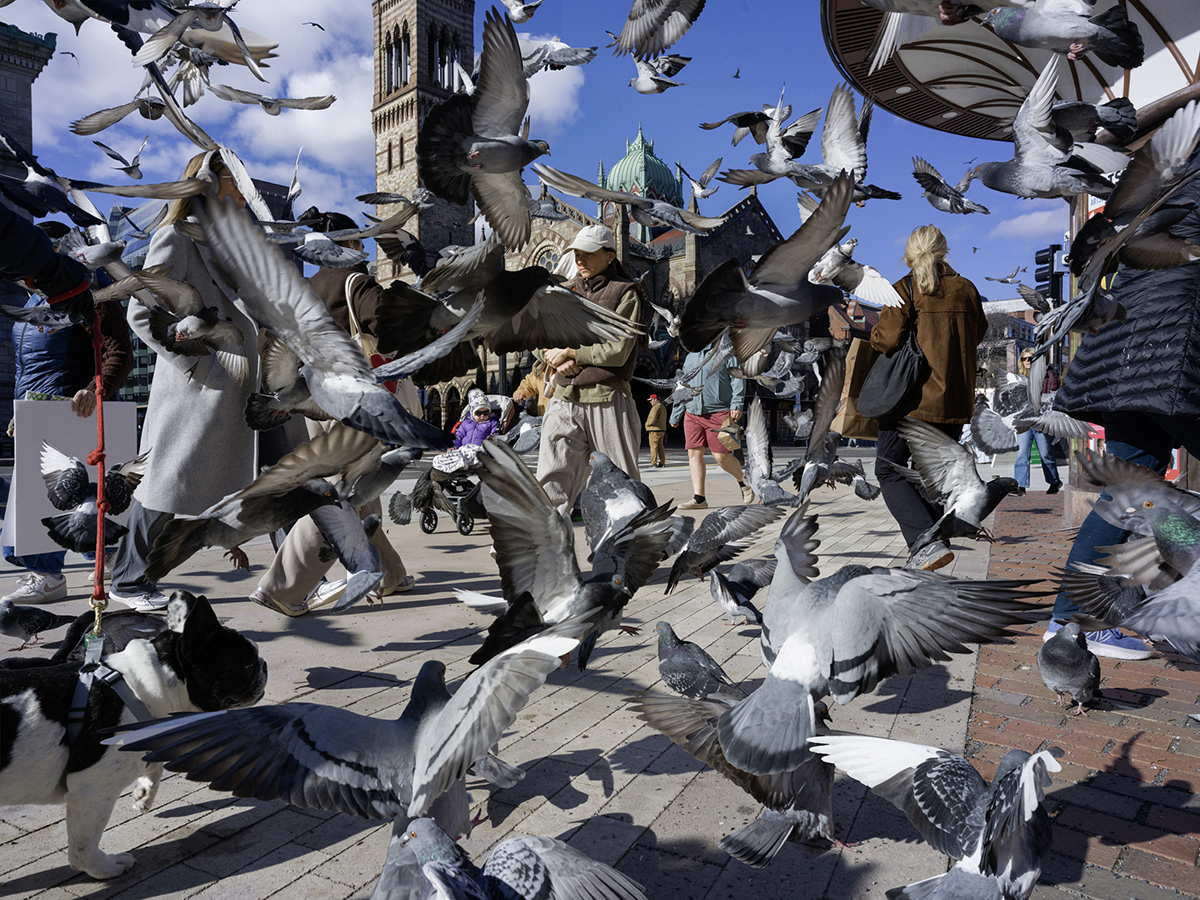 A selection of recent work by Massachusetts-based photographer Pelle Cass. Cass’s composite photographs reshuffle time and play with believability through both extreme and subtle compilations. His practice involves taking thousands of pictures on a tripod for an hour or two. Nothing is changed aside from certain things being selected or omitted. In this way, while embracing “a feeling of Dionysian chaos,” the images are “truthful” in their own way. Maybe even more so than a conventional photograph in that they contain more information of what occurred in that time/place. The slightly more mundane images Cass creates of places around Boston reflect this investment in realism—capturing people doing ordinary things or just going about their day:
