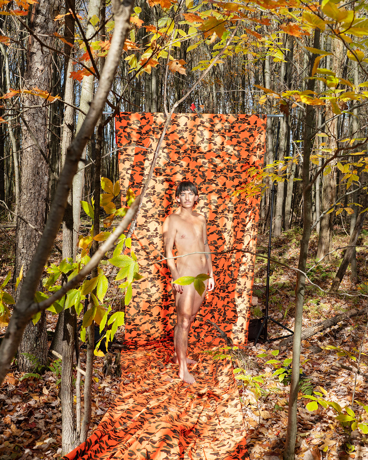 A series exploring patriarchal lineage by multidisciplinary artist Briar Pine. Currently based in Alfred, New York, Pine’s work spans photography, performance, and installation to examine identity in the American landscape. Their series, “Camouflaged,” considers how masculinities are formed and performed. Through this lens, the series asks how transmasculine identities navigate the pressure to either assimilate into dominant cultural structures or resist them entirely.