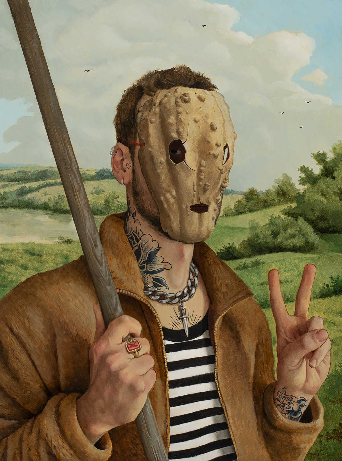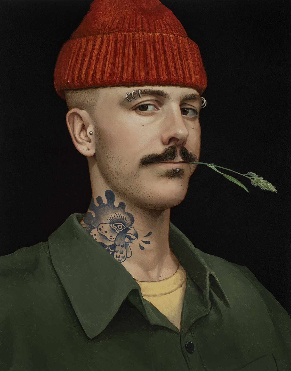 A series of Renaissance-inspired portraits of neo-rural characters by Montréal-born artist Émile Brunet. Brunet employs the codes of Western Renaissance and Medieval art to re-present popular culture and our contemporary condition. An examination of self-representation through time, Brunet explores classical forms of figuration, applying a timeless yet paradoxical form of symbolism. In “Are They Peasant,” Brunet’s figures are less resemblant of agrarian workers toiling in the countryside than of young professionals with remote jobs, taking up rural tasks in their spare time. Hobbyists, not unlike nobility performing pastoral fantasies in Rococo paintings.