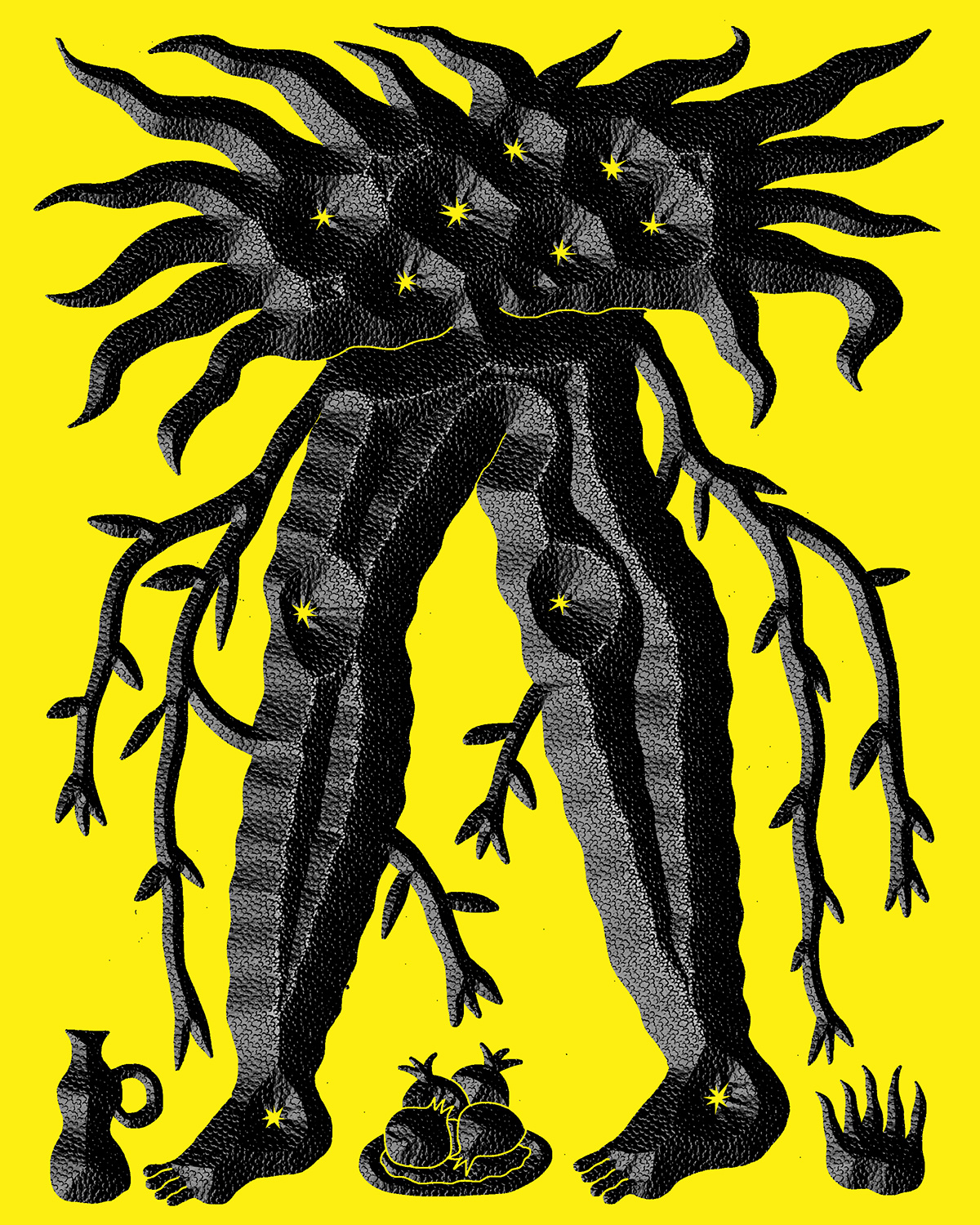 A selection of recent work from French illustrator and graphic designer Célestin Krier. Krier’s drawing practice began in childhood and seeks to preserve the sense of raw, brutal naivety from those early years. Raised by an archaeologist father, Krier developed a strong interest in strange and ancient imagery. His work aims to reintroduce cryptic and sibylline forms into the contemporary world, creating precarious, unpolished images with unbalanced shapes that Krier believes radiate a powerful energy.