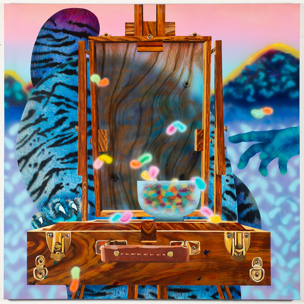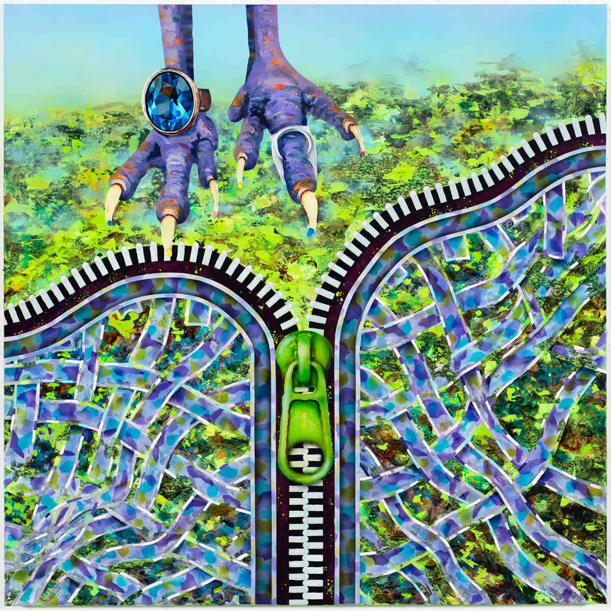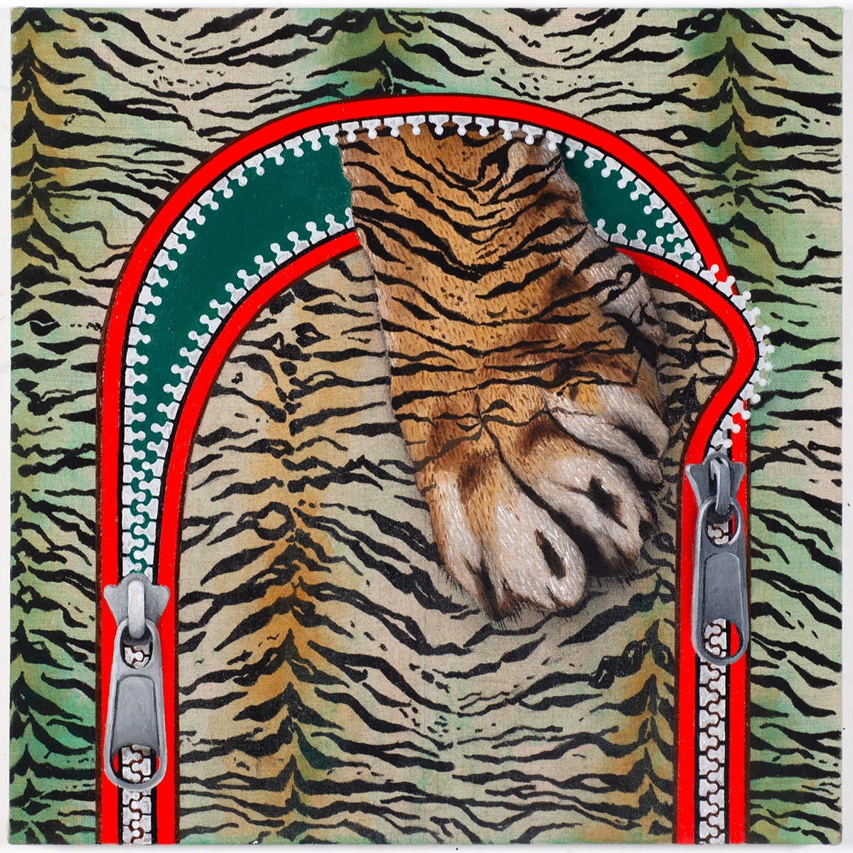 “The work emerges from lived experience shaped by movement across cultural contexts, where belonging is continually recalibrated rather than assumed. Balance, in this sense, is not a static condition but an active process—maintained through adjustment, negotiation, and care. Drawing from subtle references to Korean cultural memory—including tiger patterns derived from minhwa, traditional Korean folk painting—I layer figural elements, patterns, and fragmented forms into dense visual compositions.”