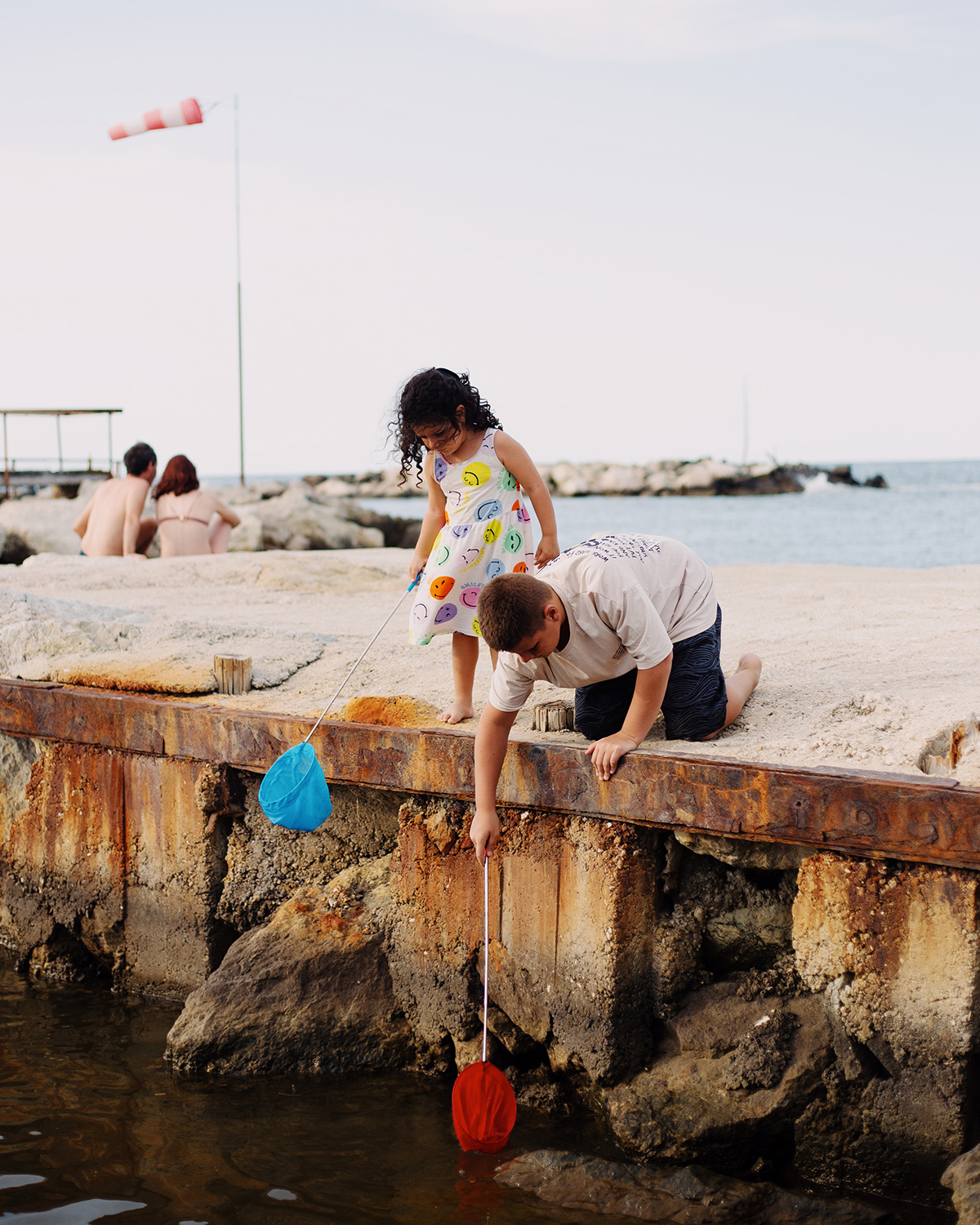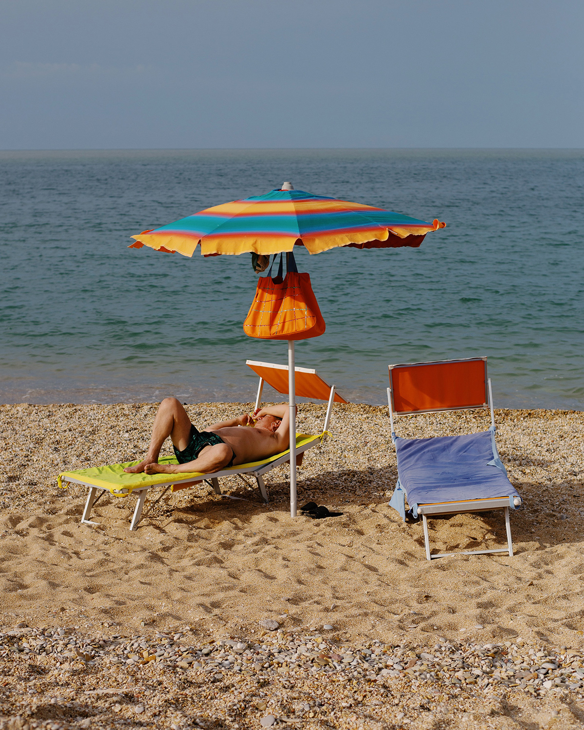 A collection of images shot by the shores of the Adriatic Sea by Italian photographer Alice Angelini. For Angelini, this is a place where locals and tourists alike adapt to a slower rhythm during the warmest season. “Water Creatures” is a project driven by a sense of curiosity for what is unknown. It contemplates this particular time and place as a state of being, a setting in which “humans return to an elemental shape”: