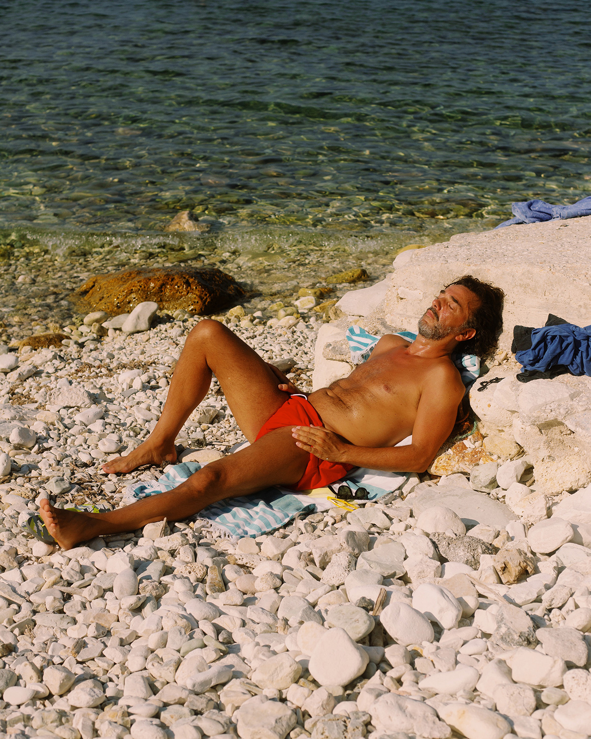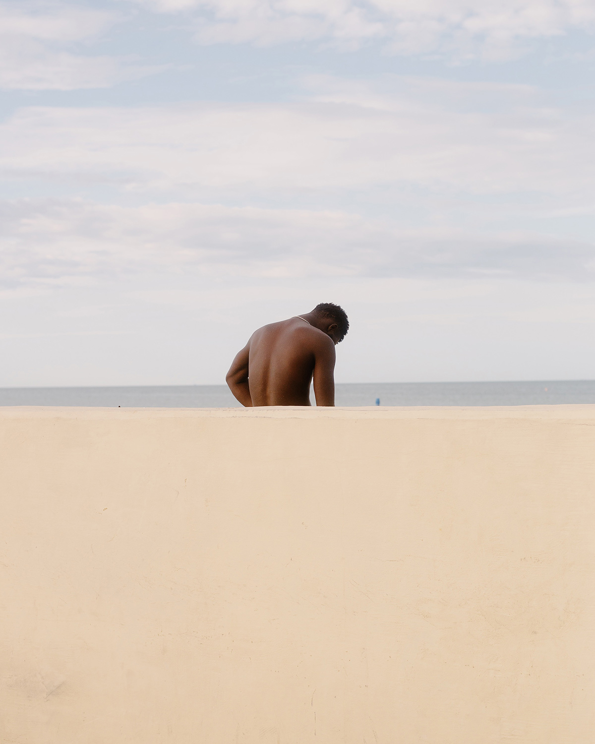 “here, every grain of sand, rock or ship becomes a spot to rest, ponder, and be without performance. In these quiet observations, I trace the similarities between people who surrender to the warm rays, capturing how their shimmering bodies echo one another unintentionally. Each year, summer anchored me to my hometown and childhood memories. In the constant setting of the beach, I photograph strangers to mirror my own self-growth as I return to these familiar places as a passerby.”
