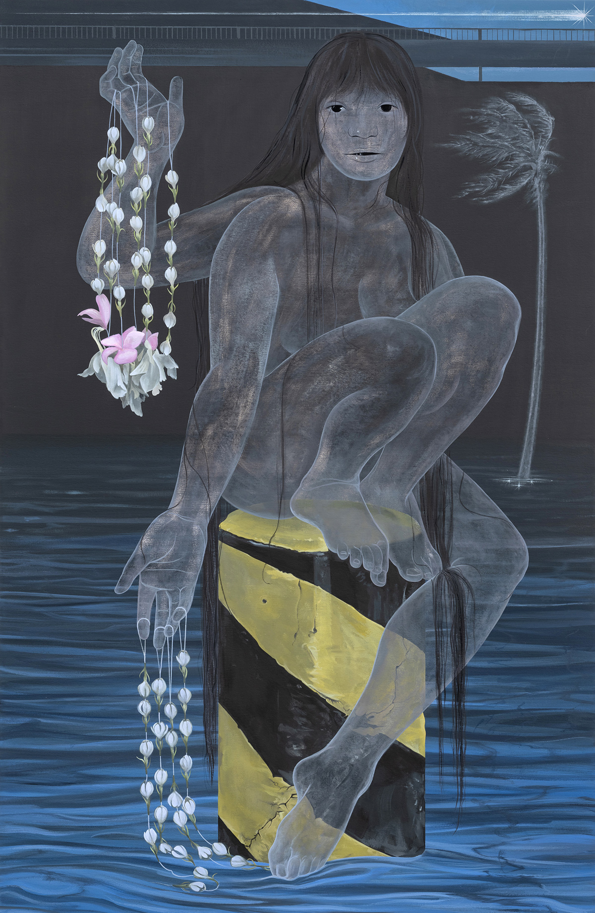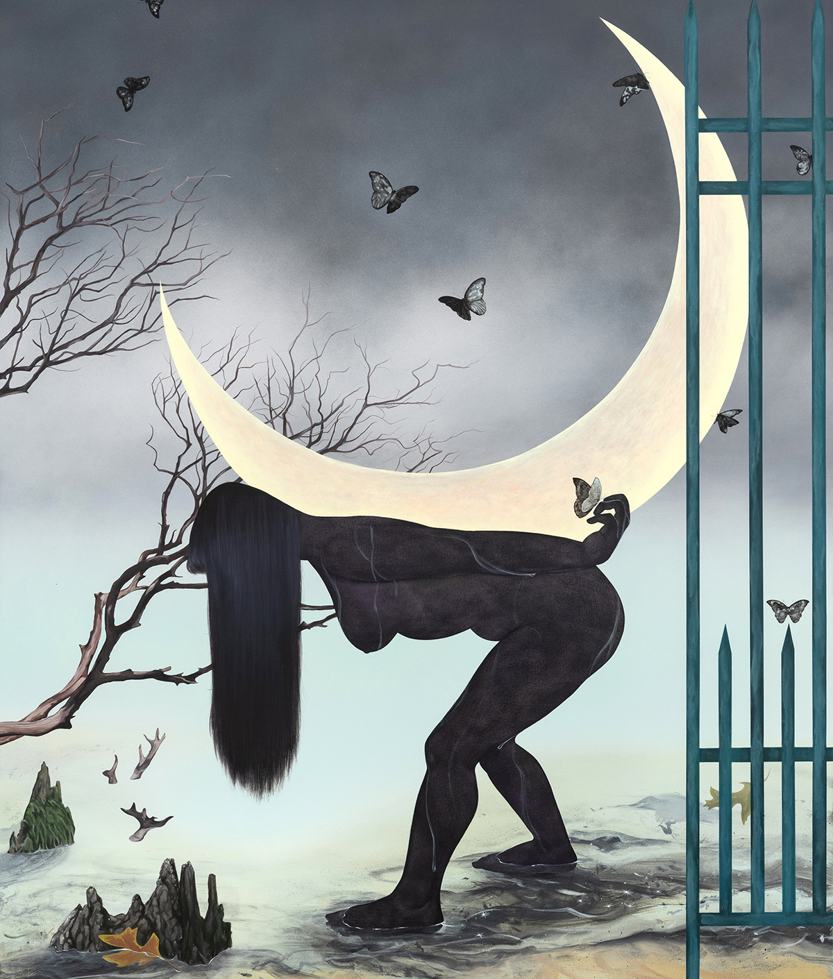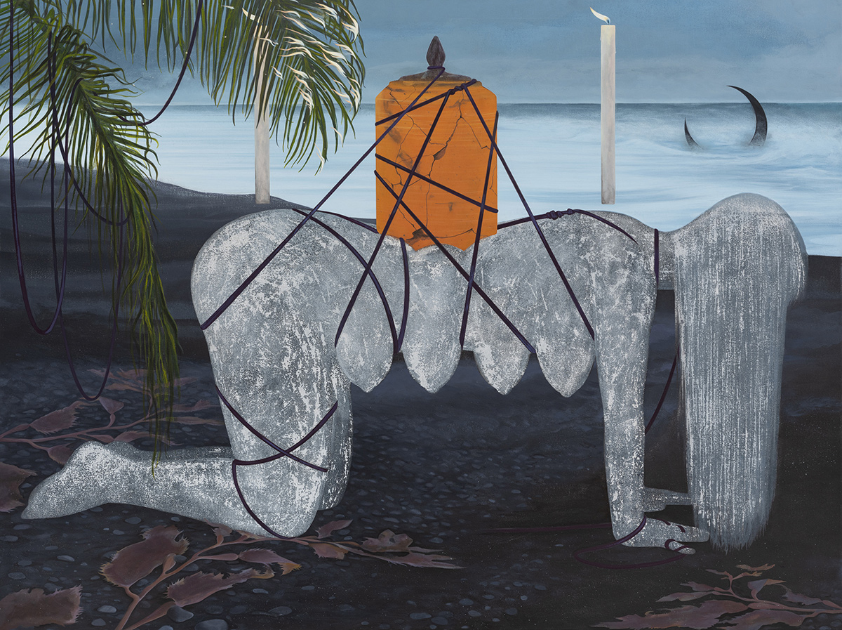 New paintings by Filipino-American artist Opal Mae Ong. Based in Brooklyn, Ong’s work contains a deep reverence for the otherworldly, combining the remnants of ancestral knowledge with speculative visions to form a kind of personal myth-making. The title of their latest series, “Always Were”, is intentionally fragmentary suggesting a temporal and grammatical ambiguity that points to the liminal nature of Ong’s figures and the time and place they inhabit.