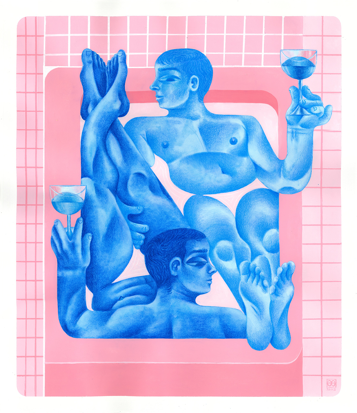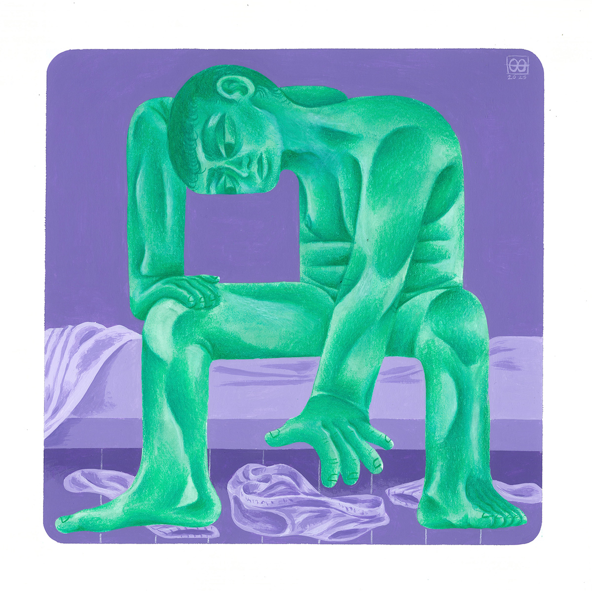 I am very interested in depicting moments that are innately human but often overlooked, forgotten about, or kept private. I think, as an artist predominantly concerned with the male figure, it excites me to show my figures in states of vulnerability, intimacy, and softness —which often occur in the privacy of one’s home. Historically the male figure has been used in art to promote traditional ideals of masculinity. Exploring the softer side of the male experience is much less mined, and provides an important perspective to counter the toxic social media culture growing within ‘The Manosphere’.