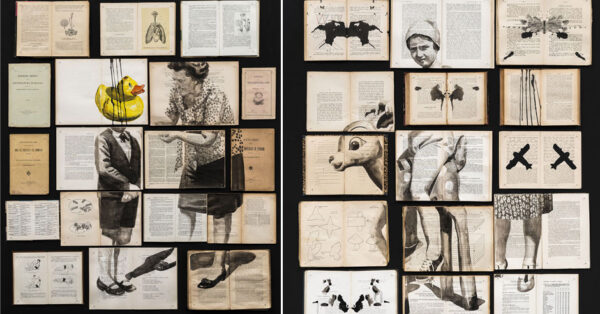 Ink Paintings Spread Through Arrangements of Vintage Books by Artist Ekaterina Panikanova