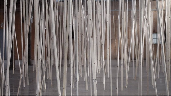 Sound Installation: Zimoun 250 prepared ac-motors, 325 kg roof laths, 1.8 km rope