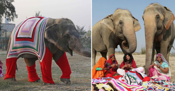 Villagers Hand-Knit Giant Sweaters to Help Keep Rescued Elephants Warm