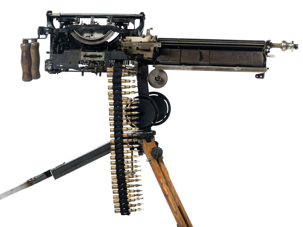 Machine Gun Sculptures Built From Deconstructed Typewriters by Artist Ravi Zupa