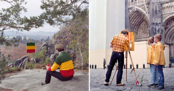 Artist Travels to Scenic Locations Only to Paint the Pattern of His Own Shirt