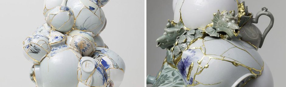 Gold-Fused Sculptures Made From Remnants of Shattered Porcelain