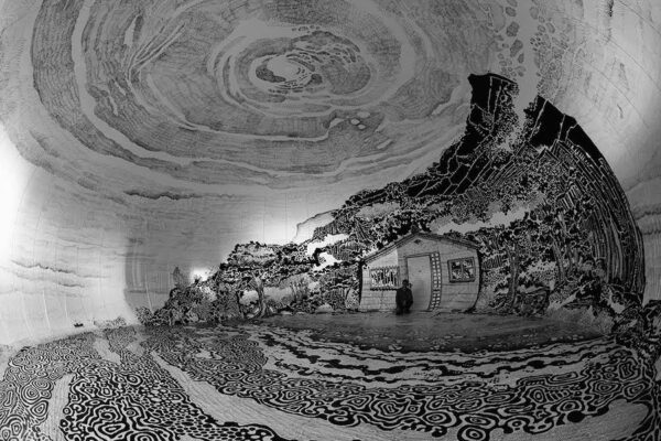 Artist Oscar Oiwa Draws a 360-Degree Landscape Inside Inflatable Dome