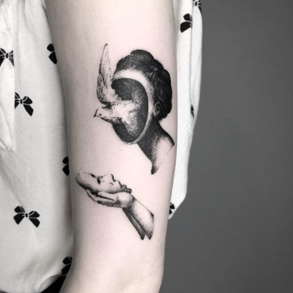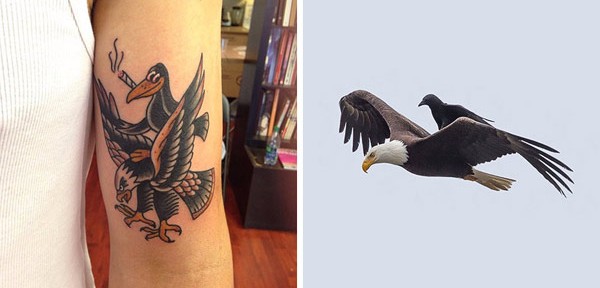 A Crow Rides a Bald Eagle: Hilarious Tattoo Becomes Reality